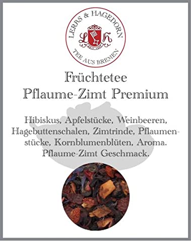 DESCRIPTION DU PRODUIT Hibiscus, pommes de pomme, baies de vigne, écorce de cannelle, morceaux de prune, fleurs de bleuet, arôme. Saveur prune cannelle.