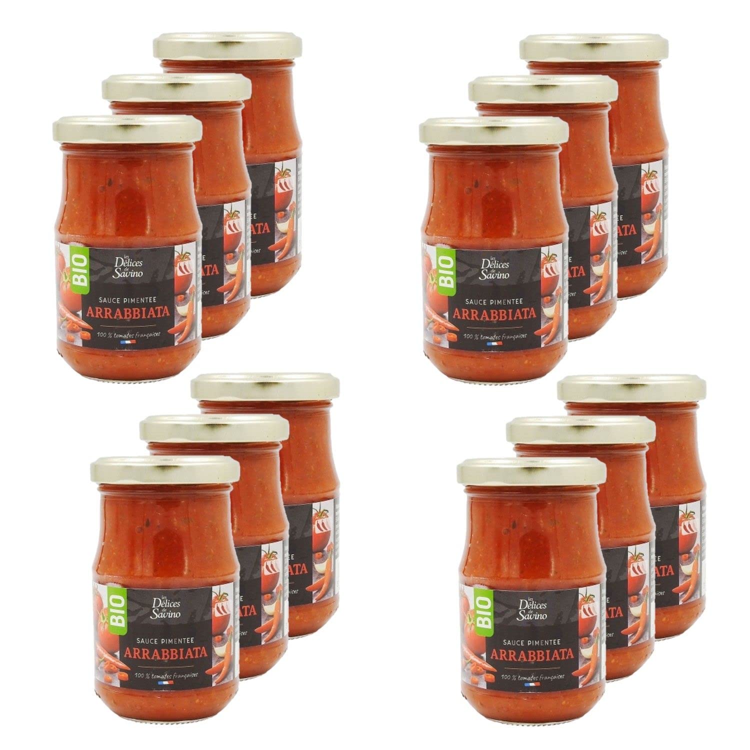 This pack contains 12 products as described below: This delicious arrabbiata sauce is ideal for enhancing your pasta, couscous, paella, or chili con carne dishes. Ingredients: Tomato puree , onions , carrots , extra virgin olive oil , spices and aromatic herbs (garlic , hot peppers , oregano , basil , pepper ), cane sugar , sea salt, WHEAT starch . Ingredients from organic farming Allergens: Gluten Storage instructions: Store at room temperature, away from heat and humidity, before opening. Directions for use: Pour the sauce into a saucepan. Heat gently for 5 minutes, stirring occasionally. To deliciously enhance your couscous, pasta, and rice, or as a condiment on grilled meats or fish. Product Information: Net Weight: 190g Origin: France Energy: 243kJ 58kcal Fat: 2.7g, of which saturates 0.36g Carbohydrate: 5.6g, of which sugars 5.6g Protein: 1.5g Dietary Fiber: 2.8g Salt: 0.9g Packaging: Glass Jar Full details are available on the product packaging. The information on this page is for guidance only. We encourage you to read the information on the product label, especially regarding food allergies. SAFETY WARNING Full details are available on the product packaging. The information on this page is for guidance only. We encourage you to read the information on the product label, especially regarding food allergies.Lot 12x Sauce arrabiata BIO - Pot 190gDESCRIPTION DU PRODUIT DESCRIPTION DU PRODUIT Ce lot contient 12 produits décrits ci-dessous : Cette délicieuse sauce arrabiata sera idéale pour agrémenter vos plats de pâtes, couscous, paëllas ou encore chili con carne. Ingrédients : Purée de tomates , oignons , carottes , huile d'olives vierge extra ,épices et plantes aromatiques (ail , piments fort , origan , basilic , poivre ), sucre de canne , sel marin, amidon de BLÉ . Ingrédients issus de l'agriculture biologique Allergènes : Gluten Mode de conservation : A conserver à température ambiante, à l'abri de la chaleur et de l'humidité avant ouverture. Conseil d'utilisation : Verser la sauce dans une casserole. Réchauffer à feu doux 5 minutes en remuant. Pour accommoder délicieusement vos couscous, pâtes et riz, en condiment sur vos grillades, viandes ou poissons. Informations produit : Poids net : 190g Origine : France Energie : 243KJ 58Kcal Lipides : 2,7g dont acides gras saturés 0,36g Glucides : 5,6g dont sucres 5,6g Protéines : 1,5g Fibres alimentaires : 2,8g Sel : 0,9g Emballage : Pot en Verre Détail complet et disponible sur l'emballage du produit. Les informations présentes sur cette page sont à titre indicatif. Nous vous invitons à prendre connaissance des informations sur l'étiquette du produit, en particulier concernant les allergies alimentaires. AVERTISSEMENT DE SÉCURITÉ Détail complet et disponible sur l'emballage du produit. Les informations présentes sur cette page sont à titre indicatif. Nous vous invitons à prendre connaissance des informations sur l'étiquette du produit, en particulier concernant les allergies alimentaires.