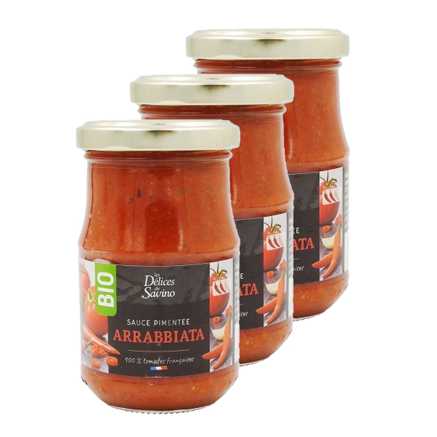 This pack contains 3 products described below: This delicious arrabbiata sauce is ideal for enhancing your pasta, couscous, paella, or chili con carne dishes. Ingredients: Tomato puree , onions , carrots , extra virgin olive oil , spices and aromatic herbs (garlic , hot peppers , oregano , basil , pepper ), cane sugar , sea salt, WHEAT starch . Ingredients from organic farming Allergens: Gluten Storage instructions: Store at room temperature, away from heat and humidity, before opening. Directions for use: Pour the sauce into a saucepan. Heat gently for 5 minutes, stirring occasionally. To deliciously enhance your couscous, pasta, and rice, or as a condiment on grilled meats or fish. Product Information: Net Weight: 190g Origin: France Energy: 243kJ 58kcal Fat: 2.7g, of which saturates 0.36g Carbohydrate: 5.6g, of which sugars 5.6g Protein: 1.5g Dietary Fiber: 2.8g Salt: 0.9g Packaging: Glass Jar Full details are available on the product packaging. The information on this page is for guidance only. We encourage you to read the information on the product label, especially regarding food allergies. SAFETY WARNING Full details are available on the product packaging. The information on this page is for guidance only. We encourage you to read the information on the product label, especially regarding food allergies.Lot 3x Sauce arrabiata BIO - Pot 190gDESCRIPTION DU PRODUIT DESCRIPTION DU PRODUIT Ce lot contient 3 produits décrits ci-dessous : Cette délicieuse sauce arrabiata sera idéale pour agrémenter vos plats de pâtes, couscous, paëllas ou encore chili con carne. Ingrédients : Purée de tomates , oignons , carottes , huile d'olives vierge extra ,épices et plantes aromatiques (ail , piments fort , origan , basilic , poivre ), sucre de canne , sel marin, amidon de BLÉ . Ingrédients issus de l'agriculture biologique Allergènes : Gluten Mode de conservation : A conserver à température ambiante, à l'abri de la chaleur et de l'humidité avant ouverture. Conseil d'utilisation : Verser la sauce dans une casserole. Réchauffer à feu doux 5 minutes en remuant. Pour accommoder délicieusement vos couscous, pâtes et riz, en condiment sur vos grillades, viandes ou poissons. Informations produit : Poids net : 190g Origine : France Energie : 243KJ 58Kcal Lipides : 2,7g dont acides gras saturés 0,36g Glucides : 5,6g dont sucres 5,6g Protéines : 1,5g Fibres alimentaires : 2,8g Sel : 0,9g Emballage : Pot en Verre Détail complet et disponible sur l'emballage du produit. Les informations présentes sur cette page sont à titre indicatif. Nous vous invitons à prendre connaissance des informations sur l'étiquette du produit, en particulier concernant les allergies alimentaires. AVERTISSEMENT DE SÉCURITÉ Détail complet et disponible sur l'emballage du produit. Les informations présentes sur cette page sont à titre indicatif. Nous vous invitons à prendre connaissance des informations sur l'étiquette du produit, en particulier concernant les allergies alimentaires.