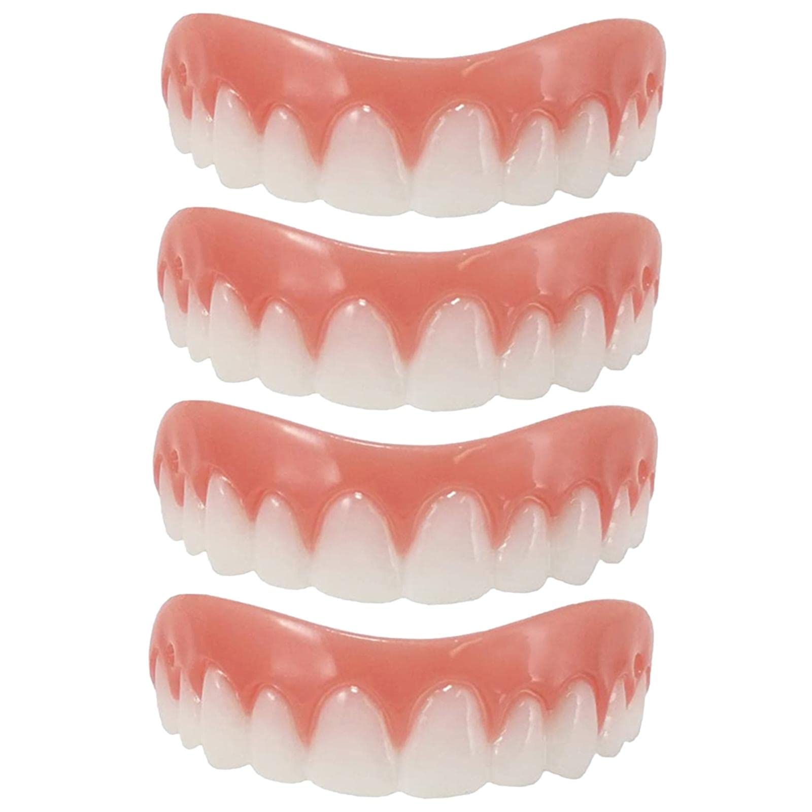 Description: - A special mold works to mask crooked, stained, missing, and gapped teeth. - It can be securely attached to the teeth. Super comfortable and cozy teeth. - A removable and reusable temporary appliance. - Easy to use, simply place it on your teeth with your hands. One size fits all. - New design. Much more realistic, much closer to your teeth. Please clean after use. Specification: - Material: Silicone - Size: 7x2cm 2.75x0.79 inches - Age range: 3 years old Package includes: 4 x Simulation teeth Note: Transition: 1 cm 10 mm 0.39 inches Please allow a slight difference of 0-1 cm due to manual measurement. Colors may appear different depending on the light and how the item is viewed. Thank you for your understanding and attention. We wish you a pleasant shopping experience! Find everything you want with us! We will do our best to provide you with an excellent shopping experience on .