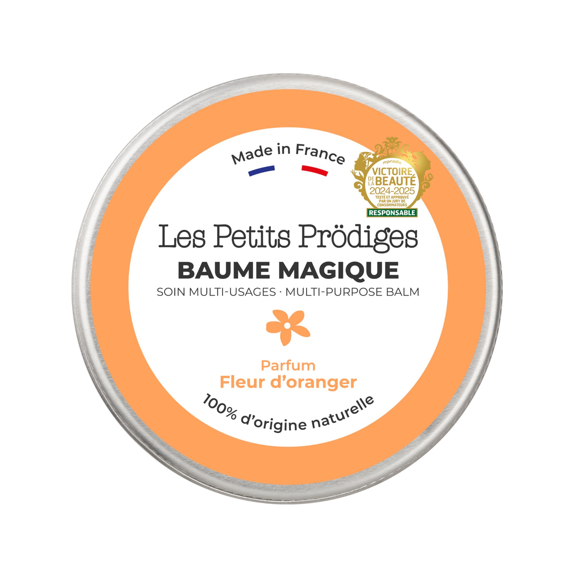 Size: 30ml What if just one beauty product was all you needed? The Magic Balm from Les Petits Prödiges is: 100 natural, Made in France Made with love. Formulated with only 8 natural ingredients, this multi-purpose balm will encompass your ENTIRE skincare routine! Face, body, hair ends, eye makeup remover, hands, lips, after-sun care, beard. It will be your beauty ally for every occasion. This balm ensures it respects your skin, and its 100 natural cotton flower scent will offer you a truly sensorial experience. Choose your size: The small one (30ml) that easily slips into your handbag or the large one (100ml) that stays at home so the whole family can enjoy it! Its benefits: A balm with numerous virtues. It nourishes, softens, soothes, and protects your skin. Suitable for all skin types. Dermatologically tested. INGREDIENTS Organic Olive Oil, Beeswax, Sweet Almond Oil, 100 Natural Orange Blossom Fragrance, Honey, Royal Jelly, Arnica, Vitamin E. Olea Europaea Fruit Oil, Cera Alba, Prunus Amygdalus Dulcis Oil, Parfum, Mel Extract, Royal Jelly Extract, Helianthus Annuus Hybrid Oil, Arnica Montana Flower Extract, Tocopherol, Limonene, Linalool, Citral. DIRECTIONS FOR USE As a facial treatment: Used daily, your skin will be beautiful and silky soft. As a body treatment: Nourishes and soothes dry skin. This balm also repairs rough areas such as feet and elbows. As a cleansing balm: Its compact texture transforms into a fluid, satiny oil. It gently removes makeup. As a lip balm: nourishes and repairs for a radiant smile. As a hair treatment: applied as an overnight mask to the ends, your hair will be silky and shiny in the morning. As a hand treatment: in winter, this balm will be your ally against chapped hands. As an after-sun treatment : immediately soothes, intensely repairs, and prolongs your tan. As an aftershave balm: soothes, nourishes, and reduces skin irritation. As a nail treatment: intensely nourishes, smooths, and strengthens nails while hydrating cuticles. As an eczema treatment. See moreLes Petits Prödiges: essentials that are good for you. Natural, sensorial, and made-in-France skincare for the whole family, in an eco-friendly format. ULTRA-SIMPLE USE: Take a small amount of balm and warm it in the palm of your hand until it becomes an oil. Gently massage the desired area… as often as you like! 100 NATURAL AND ECO-FRIENDLY: The Magic Balm comes in an infinitely recyclable aluminum jar, free of harmful plastics. Choose the size that suits you best, small or large. BENEFITS: This balm nourishes, softens, soothes, and protects the skin. Sweet almond oil moisturizes, honey is an antioxidant and healing agent, and vitamin E fights aging. 100 natural, sweet, and floral fragrance, created by a perfumer. A 10-IN-ONE TREATMENT: take care of yourself with this universal balm: face, body, hair ends, eczema, beard, hands, chapped skin, after-sun, eye makeup remover, lip balm.Baume Magique Multi Usages Fleur d'Oranger 30ml - Soin Hydratant Corps, Visage, Cheveux 100 Naturel Tout Type de Peau - Made in France - Non Testé sur Animaux Emballage Recyclable LES PETITS PRODIGES 30 ml (Lot de 1) Fleur d'OrangerDESCRIPTION DU PRODUIT DESCRIPTION DU PRODUIT Format : 30ml Et si un seul produit de beauté vous suffisait ? Le Baume magige que Les Petits Prödiges est : 100 naturel, Made in France Fait avec amour. Formulé avec 8 ingrédients naturels seulement, ce baume multi-usage résumera TOUTE votre routine skincare à lui seul ! Soin du visage, corps, pointes de cheveux, démaquillant yeux, mains, lèvres, soin après soleil, barbe. Il sera votre allié beauté en toute occasion. Ce baume vous assure de respecter votre peau et son parfum 100 naturel de fleur de coton vous offrira une expérience des plus sensorielles. Choisissez votre format : Le petit (30ml) qui se glisse facilement dans votre sac à main ou le grand (100ml) quii reste à la maison pour que toute la famille puisse en profiter ! Ses bénéfices : Un baume aux nombreuses vertus. Il nourrit, adoucit, apaise et protège votre peau. Convient à tous types de peaux. Testé sous contrôle dermatologique. INGRÉDIENTS Huile d'Olive Bio, Cire d'Abeille, Huile d'Amande Douce, Parfum de Fleur d'Oranger 100 d'origine naturelle, Miel, Gelée Royale, Arnica, Vitamine E. Olea Europaea Fruit Oil, Cera Alba, Prunus Amygdalus Dulcis Oil, Parfum, Mel Extract, Royal Jelly Extract, Helianthus Annuus Hybrid Oil, Arnica Montana Flower Extract, Tocopherol, Limonene, Linalool, Citral. MODE D'EMPLOI En soin du visage : utilisé quotidiennement, votre peau sera belle et douce comme de la soie. En soin pour le corps: nourrit et apaise les peaux sèches. Ce baume répare également les zones rugueuses comme les pieds et les coudes. En baume démaquillant : sa texture compacte se transforme en une huile fluide et satinée. Il offre un démaquillage doux pour la peau. En baume à lèvres : nourrit et répare, pour un sourire sublimé. En soin pour les cheveux : appliqué en masque de nuit sur les pointes, vos cheveux seront soyeux et rayonnants au matin. Soin pour les mains : l'hiver ce baume sera votre allié contre les mains gercées. Soin après soleil : apaise immédiatement, répare intensément et prolonge le bronzage. Baume après rasage : apaise, nourrit et atténue les irritations cutanées. Soin pour les ongles : nourrit, lisse et fortifie intensément les ongles, tout en hydratant les cuticules. En traitement contre l'eczéma. Voir plusLes Petits Prödiges : les essentiels qui vous veulent du bien. Des soins naturels, sensoriels et made in France, pour toute la famille, dans un format écoresponsable. UTILISATION ULTRA SIMPLE : Prélevez une noisette de baume et réchauffez-la dans le creux de la main jusqu'à obtention d'une huile. Massez délicatement la zone souhaitée… aussi souvent que désiré !. ÉCORESPONSABLE 100 NATUREL : Le Baume Magique vous est proposé dans un pot en aluminium recyclable à l'infini, sans plastique dangereux pour
