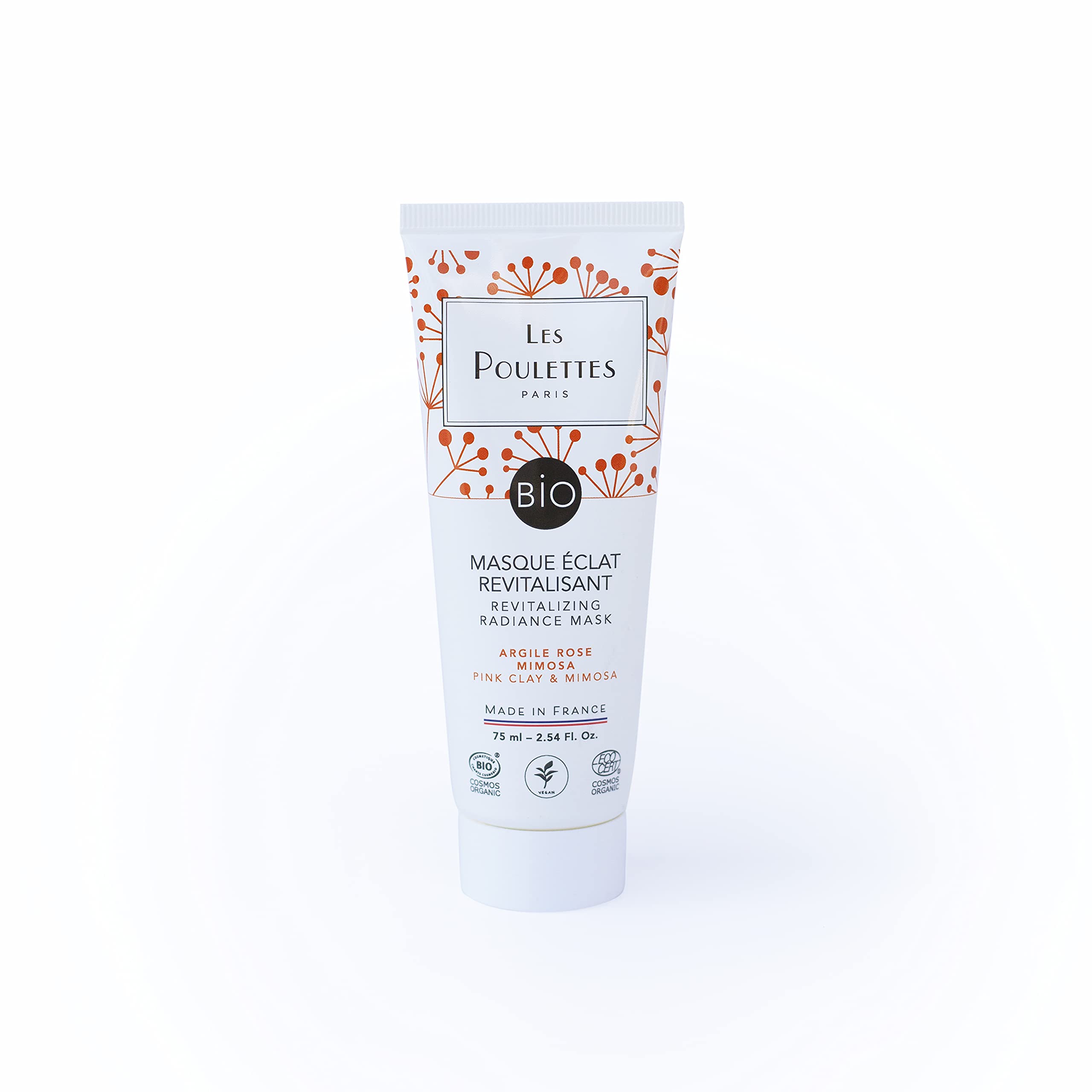 Les Poulettes - Organic certified revitalising mask for radiance pink clay and mimosa wax 75 ml face mask with clay natural ingredients made in France