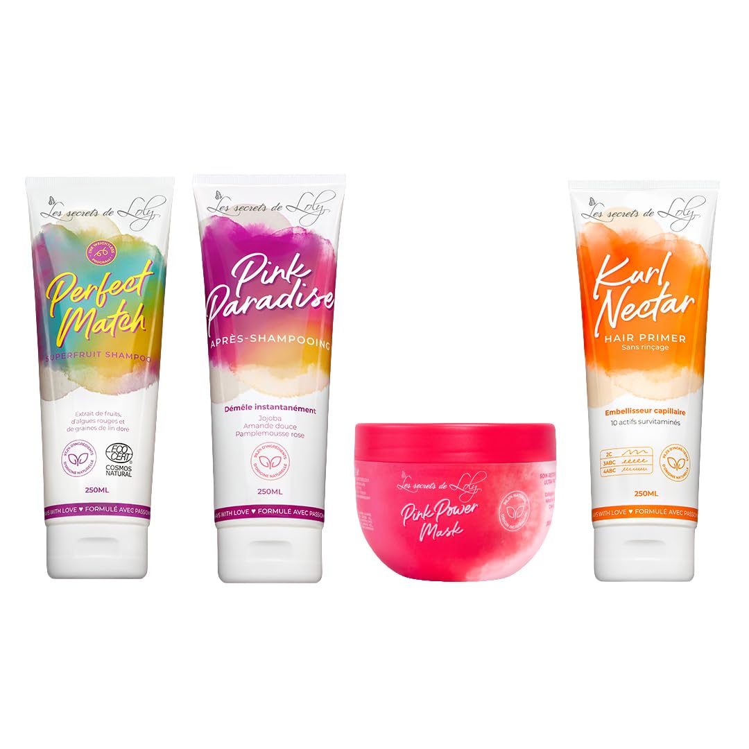 Les Secrets De Loly Rituel de soin pour cheveux textur s Shampooing Perfect Match Apr s-shampooing Pink Paradise Masque Pink Power Mask Leave-in Kurl Nectar 3x250ml + 1x300ml Les Secrets De Loly - Rituel de soin pour cheveux textur s