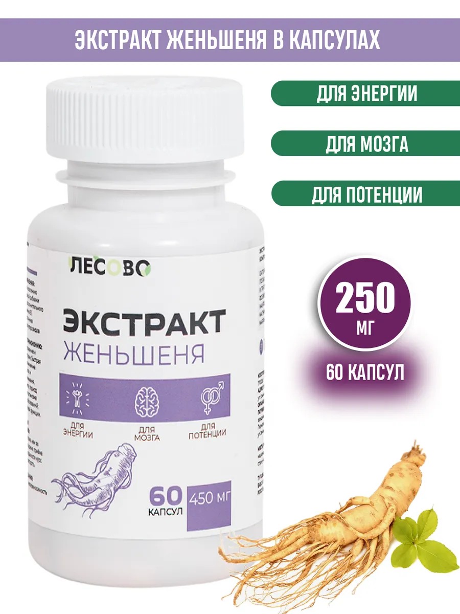 Лесово Экстракт Женьшеня, 60 капсул х 250 мг