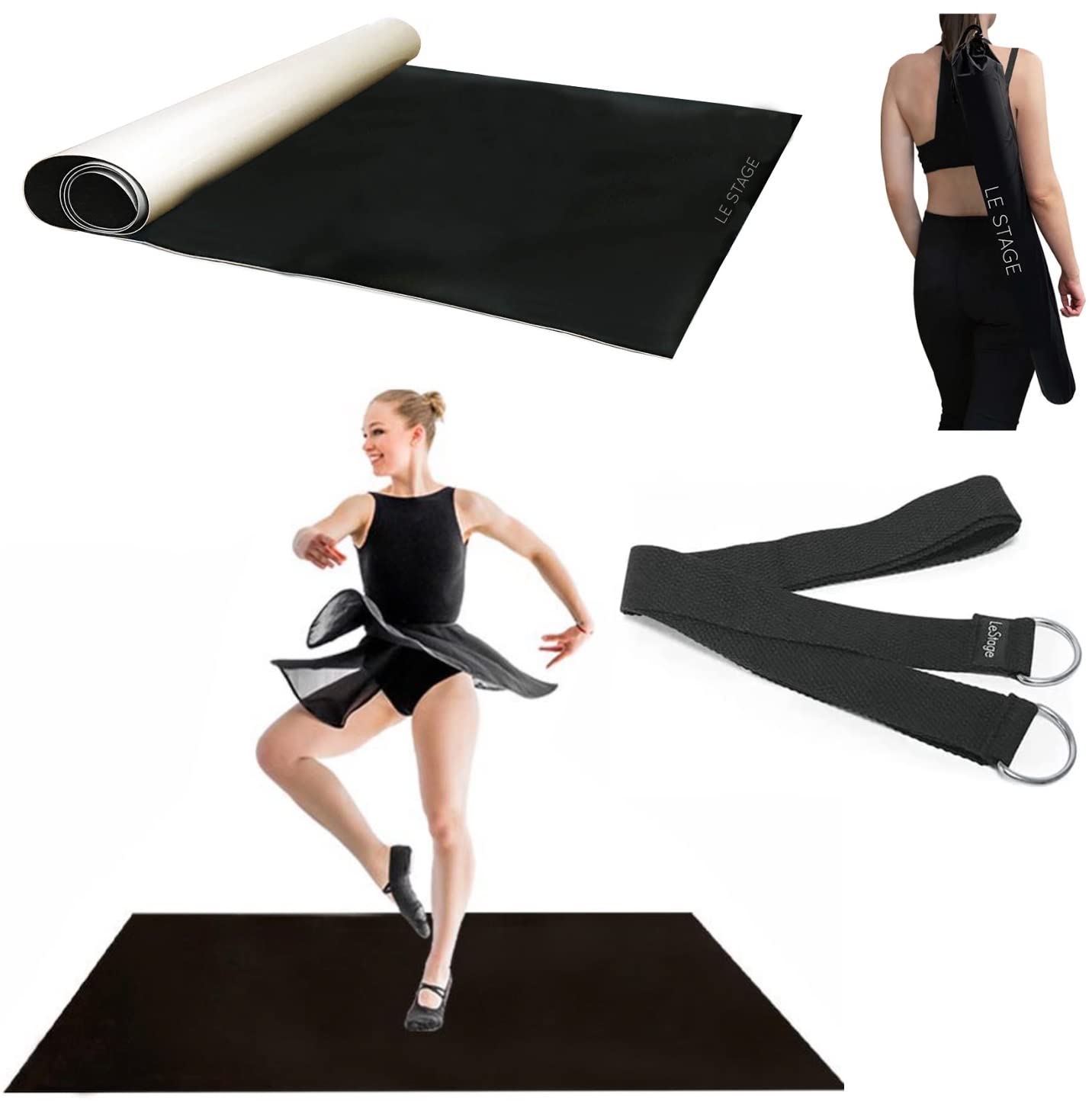 LeStage Dance Floor Portable Dance Floor Mat with Stretch Strap Controlled Slip Surface to Practice and Improve Dance Ballet Performance at Home, Studios, Stage Kids & Adults 71" x 36.5"
