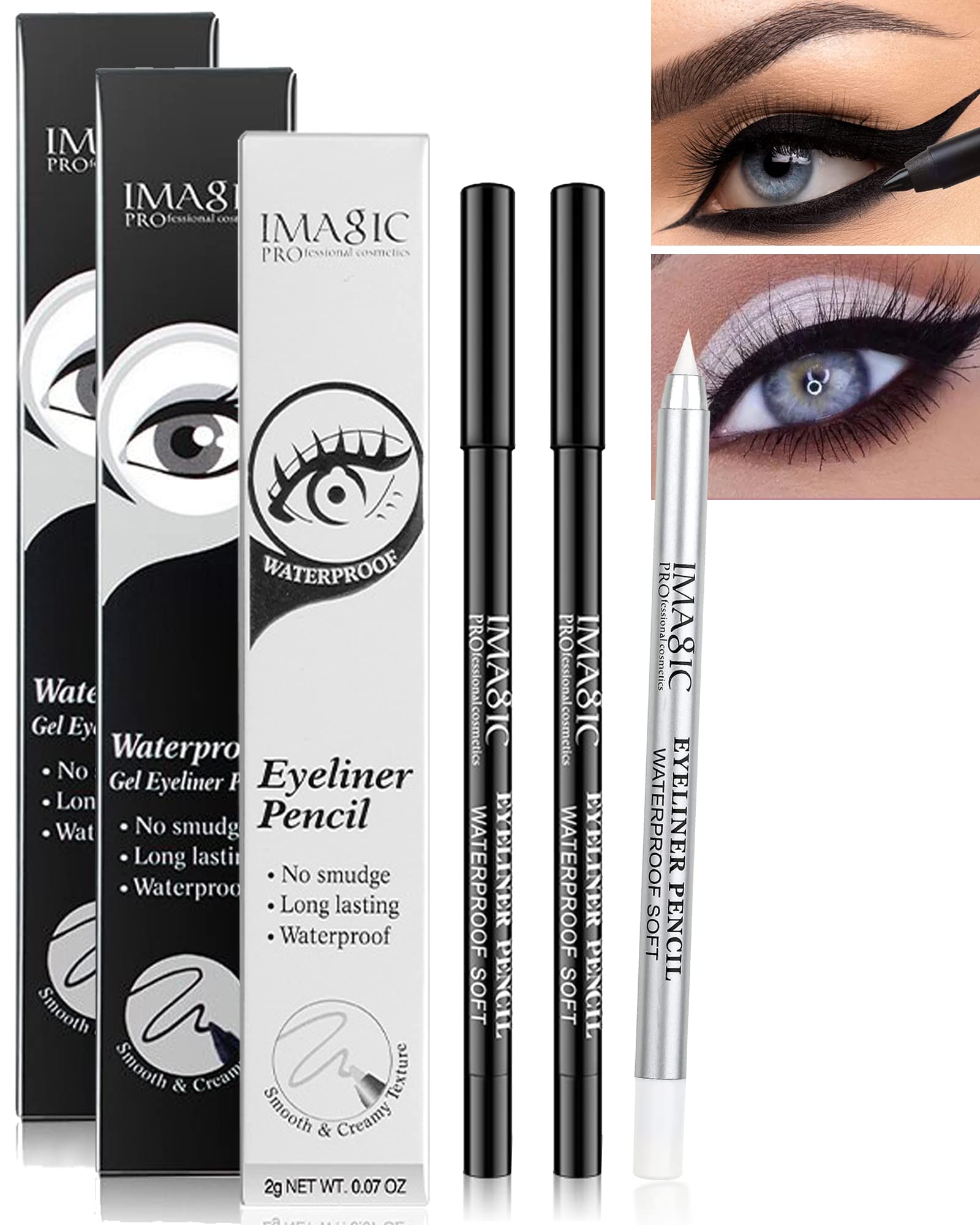Set of 2 black and 1 white waterproof pens, white eyeliner pencil, eyeliner pencil, long-lasting matte studio tattoo pencil, super soft formula, eyeliner, eyeshadowIdeal choice: This matte black gel eyeliner pen has a gentle, paraben-free, vegan, gluten-free, and cruelty-free formula that can be used on sensitive skin. Its unique packaging makes it the perfect gift for friends and family. Take it anywhere: Our eyeliner pencils are lightweight and compact, making them easy to carry and store in your makeup bag. Suitable for various occasions, including weddings, parties, and shopping. Made with high-quality ingredients, it lasts all day. Perfect for salons, parties, weddings, and everyday wear. Easy to use and remove: Simply extend the pencil, draw a line from the inner corner of your eye to the outer corner of your upper and lower lash lines, as close to your natural lash line as possible, and then create all kinds of charming eye makeup looks. It's easy to remove with makeup remover, quick and clean, and you'll never have to worry about pigmentation. High pigmentation and long-lasting smoothness - This matte eyeliner features a densely pigmented formula that dries quickly and is easy to apply. It's silky smooth, won't clump or smudge, and glides on effortlessly to complement your natural eyeliner. Perfect for all-day wear, it lines, defines, and defines the eyes, providing long-lasting makeup application that creates precise lines for a charming look. The classic color complements any base makeup. Waterproof, long-lasting, and smudge-proof - This eyeliner is waterproof, sweat-resistant, and smudge-proof. The creamy texture is smooth and creamy, won't fade, and provides intense definition that lasts without smudging or running. It will become your go-to eyeliner, no matter where you go.Lot de 2 stylos noirs et 1 stylo à eye-liner en gel blanc imperméable à l'eau pour eye-liner - Marqueur blanc - Pour tatouage - Longue durée - Super lisse - Formula - Eyeshadow - MaquillageDESCRIPTION DU PRODUIT Lot de 2 stylos noirs et 1 stylo blanc waterproof, crayon contour des yeux blanc, crayon contour des yeux, crayon de tatouage de studio mat longue durée, formule super douce, eye-liner, fard à paupièresChoix idéal : ce stylo à eye-liner en gel noir mat a une formule douce, sans parabène, végétalien, sans gluten, sans cruauté et peut être utilisé sur les peaux sensibles. Avec un emballage unique, serait le cadeau parfait pour vos amis, votre famille. À emporter partout - Nos crayons eyeliner sont légers et petits, de sorte qu'ils sont faciles à transporter et à ranger dans votre trousse de maquillage. Convient pour différentes occasions, mariages, fêtes, shopping, etc. Il est composé d'ingrédients de haute qualité et peut durer toute la journée. Convient pour les salons, les fêtes, les mariages, la vie quotidienne, etc. Facile à utiliser et à enlever - Sortez le cylindre lorsque vous l'utilisez, tracez une ligne du coin interne de l'œil à l'extrémité de la couronne supérieure et inférieure, aussi près que possible de la couronne des cils, puis selon vos propres idées pour créer toutes sortes de maquillage des yeux charmants. Facile à enlever avec un démaquillant, rapide et propre, ne vous inquiétez jamais de la pigmentation. Haute pigmentation et lisse durable - Cet eye-liner mat de formule densément hautement pigmentée, séchage rapide et facile à appliquer, lisse comme la soie, pas d'agglomération ou de bavures, peut facilement glisser pour compléter l'eye-liner naturel. pour toute la journée, pour ligner, définir et marquer les yeux, pour une application de maquillage durable qui peut dessiner des lignes précises pour un look charmant. La couleur classique convient à tout maquillage de base de couleur. Résistant à l'eau, durable et ne ternit pas - Cet eye-liner est imperméable, résistant à la transpiration et aux taches. La texture crémeuse est lisse, crémeuse, ne se décolore pas et fournit une définition intense qui dure longtemps sans brouiller ni bavures. Il sera votre eye-liner préféré, peu importe où vous allez.