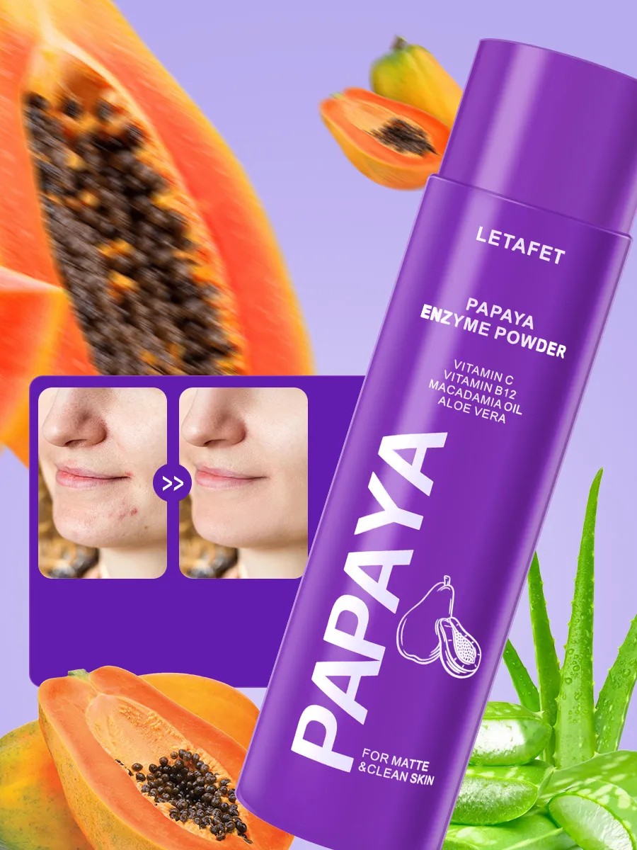 This enzyme cleansing powder with vitamin C is a versatile product for deep cleansing and comprehensive skin care. Its formula not only effectively removes impurities but also restores skin, leaving it fresh, radiant, and healthy-looking. This cleanser contains a complex of active ingredients that provide comprehensive care. Allantoin moisturizes and eliminates tightness, leaving skin comfortable after cleansing. Aloe vera leaf powder regulates sebum production, prevents the appearance of age spots, and improves overall skin tone. Vitamin C combats signs of aging, tightens pores, stimulates collagen production, and gives skin a natural glow. Papain, a natural enzyme, unclogs pores, evens out skin texture, and restores radiance. Hyaluronic acid restores moisture balance, deeply hydrating the skin. Vitamin B12 protects against dullness, restores a healthy complexion, and has anti-inflammatory properties. Macadamia seed oil softens and renews the skin, reduces inflammation, and soothes irritation. When mixed with water, the cleanser turns into a gentle foam that gently cleanses the skin of impurities, makeup residue, and excess sebum, while also combating flaking and imperfections. This enzyme peel is suitable for all skin types: dry, oily, problematic, combination, and sensitive. The powder also helps tighten pores and reduce inflammation. After use, skin is not only clean but also healthy and moisturized. Before using the enzyme powder for the first time, we recommend performing a sensitivity test. This will help avoid unwanted reactions and ensure the product is right for you. If an allergic reaction occurs, discontinue use.