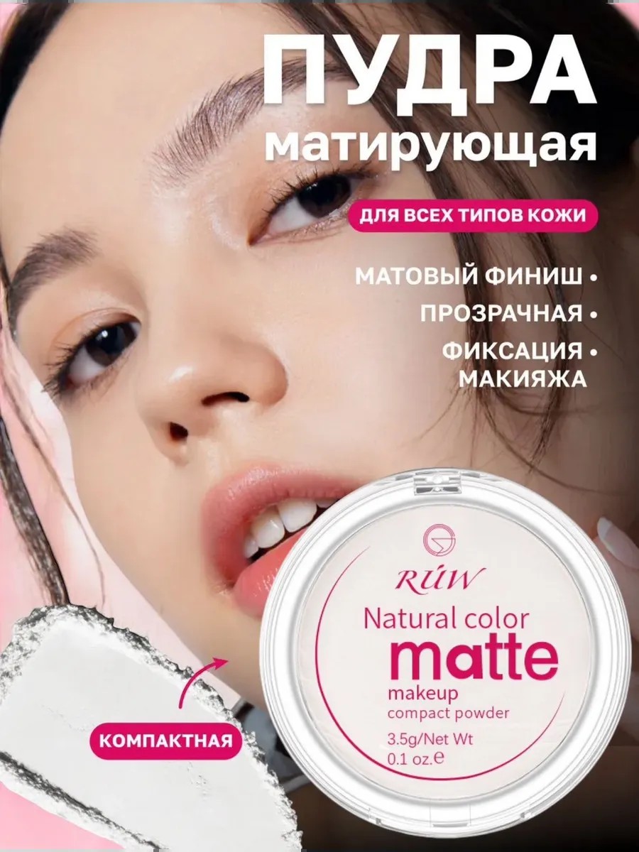 Матирующая пудра для лица от RUW Natural color matte make up powder - это идеальный вариант для закрепления, матирования и устранения избыточного блеска в макияже. Компактная (прессованная) пудра имеет ряд преимуществ: