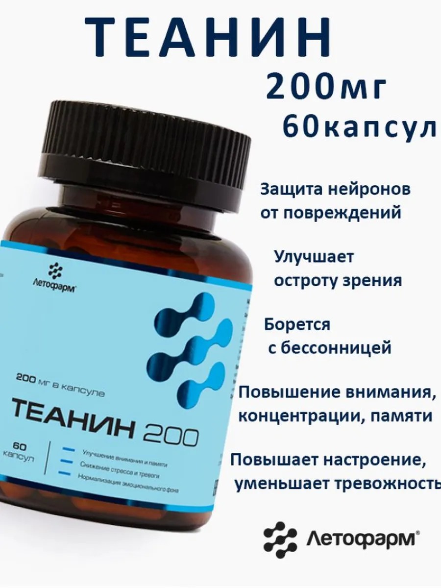 Теанин тормозит выработку кортизола и разрушает уже синтезированный гормон. Это необходимо при постоянной усталости, тревоге и депрессии. Употребление L-теанина улучшает психическое состояние и повышает способность справляться с негативными эмоциями. Улучшает когнитивные функции (внимание, концентрацию, память). Обладает нейропротективными свойствами (защита нейронов от повреждений). Борется с бессонницей, снимает нервное возбуждение и создаёт условия для глубокого и качественного сна. Улучшает остроту зрения, повышает зрительную чёткость и предотвращает развитие заболеваний, связанных со старением. Облегчает напряжение и уменьшает боли в мышцах после интенсивных физических нагрузок.