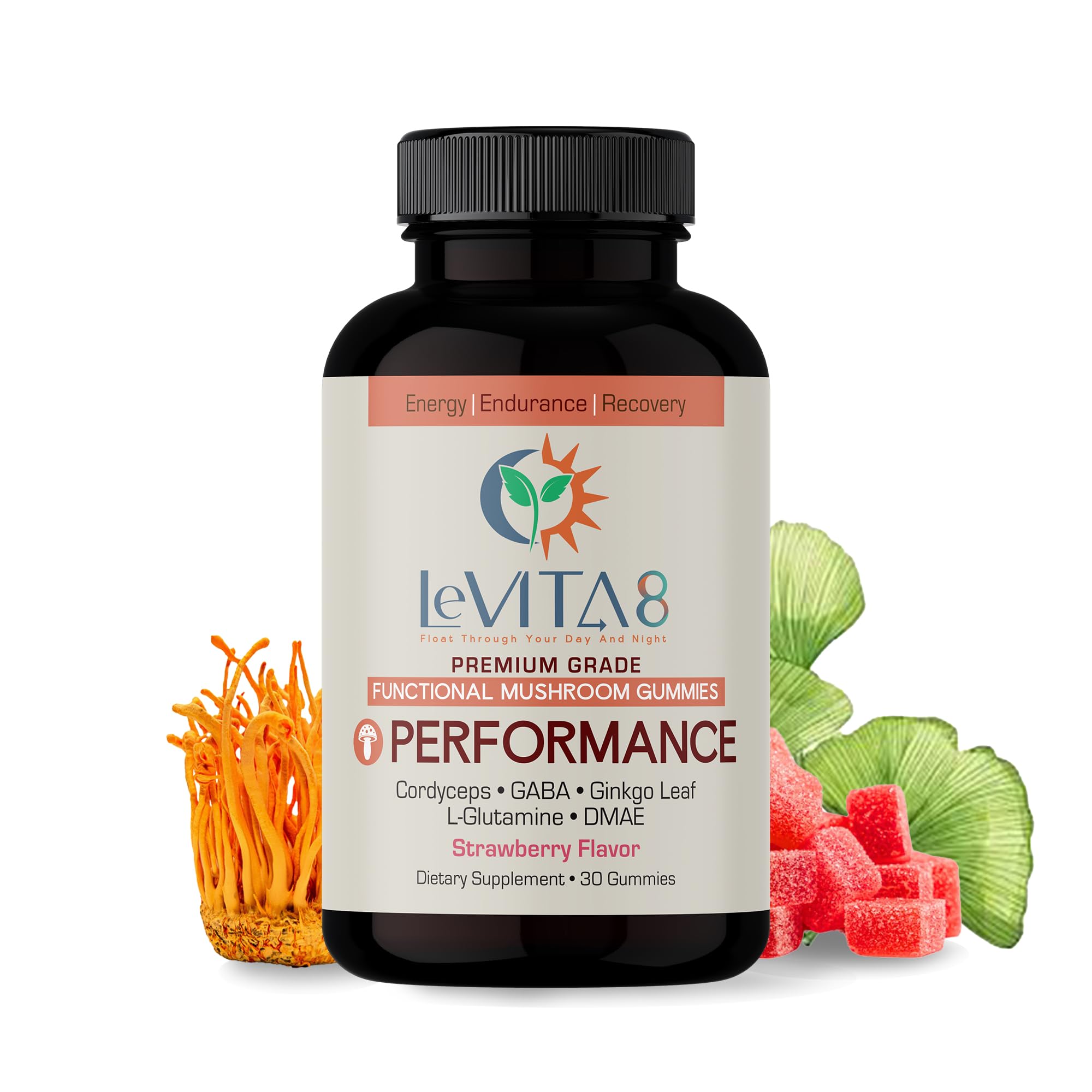 LeVITA8 Premium Mushroom Gummies for Focus & Energy - Cordyceps Gummies with 100% Natural Strawberry Flavor for Adults - Mushrooms Herbal Supplements for Endurance & Immune Support - 1 Month Supply