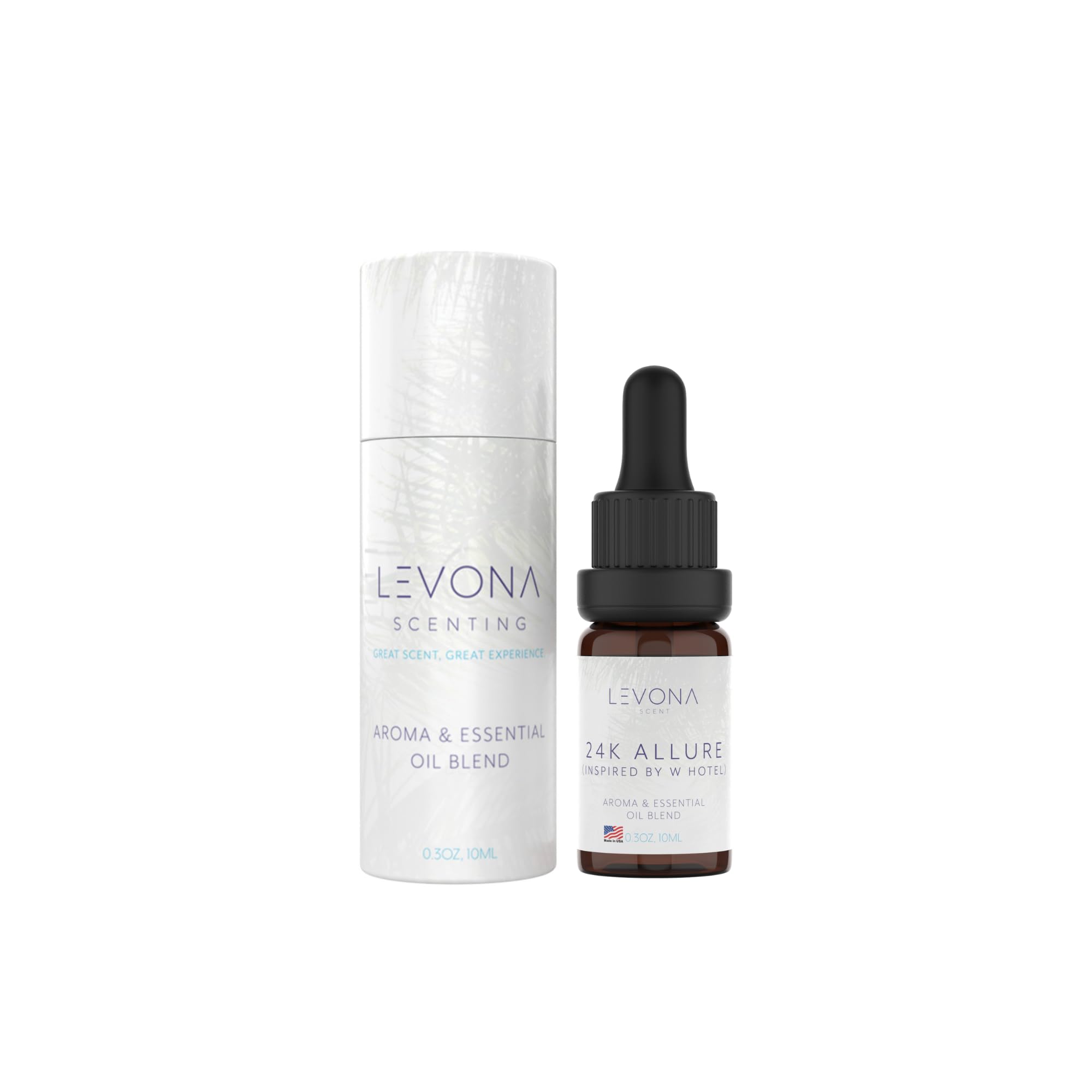 Levona Scent Essential Oil in 24K Allure captures the essence of luxury with a refined blend of bright bergamot, zesty lemon, and fresh lemongrass, layered with delicate floral notes of magnolia, jasmine, and lily, and grounded by warm koa wood and musk. Designed for use in humidifiers and diffusers, this fragrance fills your home, office, hotel, or spa with an opulent and inviting aroma that evokes elegance and sophistication. Its long-lasting scent disperses evenly, creating a soothing and revitalizing atmosphere. The bottle is designed for easy compatibility with Levona diffusers, allowing for effortless use without the need for transferring oils or cleaning containers. With multiple size options available, you can choose the perfect fit for your space, whether for personal relaxation or large-scale scenting. Ideal for everyday freshness or special occasions, this essential oil enhances any environment with its balanced and sophisticated fragrance. Whether transforming your living space into a luxurious retreat, elevating a guest experience, or creating a welcoming ambiance in a professional setting, Levona Scent Essential Oil offers quality and convenience. Proudly made in the USA and IFRA safety-approved, it meets standards of purity for a refined scenting experience.MADE IN THE USA: Levona Essential Oils are made in the USA and are IFRA approved. Ensure your family enjoys high-quality, safe fragrance oils. Puchase with confidence!. DESIGNED TO FIT LEVONA DIFFUSERS: Our bottles are designed for seamless compatibility with Levona's essential oil diffusers. No need for transfers—simply insert the bottle and enjoy the aroma. Use 700ml for Lavanda, 500ml for Arosa, and 120ml for Viola. PERFECT HOLIDAY GIFT: Our oils are carefully packaged in exquisite boxes, making them perfect for gifting, too. Surprise your family and friends on their birthdays or anniversaries, send as a perfect gift, or give a bottle to someone you love – just because!. 100 PURE ESSENTIAL OILS: Our essential oils for diffusers are 100 pure and natural, with no added fillers, bases, or additives. Experience the Levona difference—quality fragrance oils that deliver long-lasting aromas for your space. REFRESHING BLENDS YOU'LL LOVE: Inspired by pure elegance, 24K Allure blends bright bergamot, zesty lemon, and lemongrass with soft florals. A rich base of warm koa wood and musk adds depth, creating a sophisticated retreat.