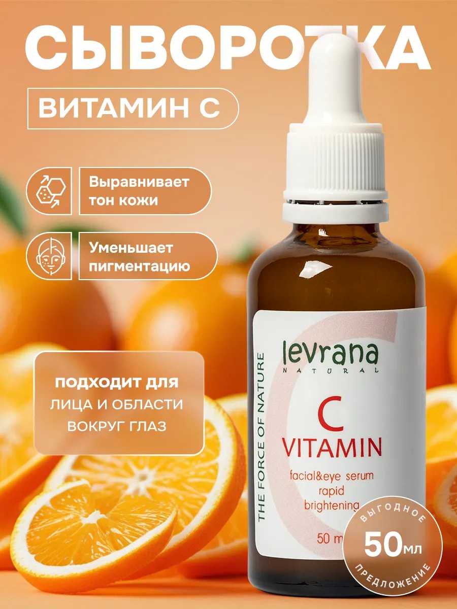 Осветляющая сыворотка для лица и области вокруг глаз с устойчивой и стабильной формой витамина С — Ascorbyl Glucoside, проявляет свою активность на протяжении всего срока годности. Аскорбил глюкозид имеет целый набор полезных свойств: обладает противовоспалительным действием, выравнивает тон, придает коже здоровое сияние. Витамин С — мощный антиоксидант с омолаживающим действием, который противостоит действию свободных радикалов, разрушающих клетки и приводящих к преждевременному старению, замедляет процесс разрушения коллагена и участвует в формировании его новых волокон, выравнивает поверхность кожи, заметно осветляет тон и уменьшает признаки старения, такие как тонкие линии и морщины, интенсивно разглаживает, повышает эластичность сосудов при куперозе. Топ сыворотка для лица поддерживает упругость и эластичность, контролирует выработку меланина, предупреждая гиперпигментацию, эффективно работает против пигментных пятен, снимает признаки усталости, купирует воспаления в виде прыщей, угрей и акне. Ультралегкая восстанавливающая витаминная антивозрастная сыворотка концентрат для борьбы с несовершенствами быстро впитывается и не оставляет ощущения пленки на лице. Подходит для всех типов кожи, в том числе для чувствительной, возрастной и комбинированной. Применения: перед нанесением косметического продукта необходимо очищение и тонизация кожи. Сыворотку распределить по массажным линиям. Одна доза составляет 1 - 2 капли средства. После полного впитывания рекомендуется нанести крем. Подходит для области вокруг глаз. При нанесении сыворотки в дневное время необходимо использовать солнцезащитный крем: не менее 30 спф в зимнее, осеннее и весеннее время, не менее 50 SPF в летнее время, чтобы избежать нежелательной пигментации. Уходовая косметика с витамином С оказывает на кожу интенсивное увлажняющее, выравнивающее, отбеливающее действие, помогает сохранить ее молодость и красоту. При ежедневном использовании заметен эффект сияния, упругости и разглаживания кожи.