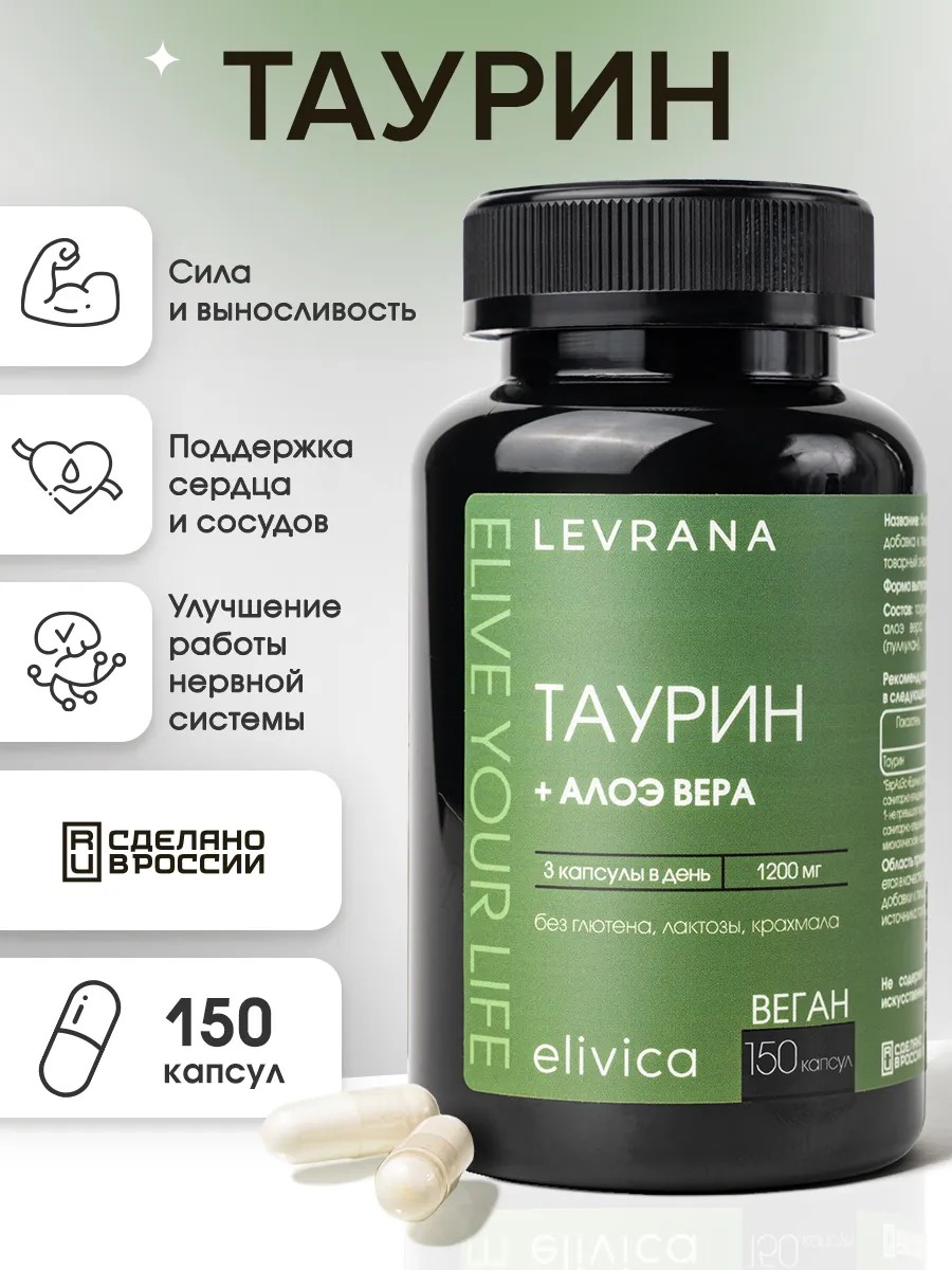 Taurine is a conditionally essential amino acid that plays a role in many metabolic processes in the body of both men and women. It is a neuromodulator involved in energy metabolism. It supports eye health and restores and normalizes heart rhythm. This amino acid is essential for maintaining skeletal muscle function and protects against degeneration. It promotes accelerated recovery after intense training and various injuries. It has a beneficial effect on muscle development and strength gains. It normalizes protein and carbohydrate metabolism, hormone formation, and enzyme system function. It reduces triglyceride levels, thereby reducing the risk of obesity. Taurine is a natural product of the metabolism of sulfur-containing amino acids: cysteine, cysteamine, and methionine. It is a component of heart and skeletal muscle tissue and a neurotransmitter. Taurine consumption promotes vasodilation, which significantly facilitates oxygen delivery to muscles. This positively influences athletic performance and is often used in the prevention and treatment of cardiovascular diseases. Taurine's effects include reducing aggression, nervousness, and anxiety. It improves energy production, regulates carbohydrate and fat metabolism, and protects the liver from damage. This amino acid reduces brain activity and is essential for vision. It helps transport nutrients to tissues, organs, and muscles. It is also a component of bile, helping digest fats and absorb fat-soluble vitamins. It prevents ligament and joint injuries and lowers blood sugar levels. Combined with aloe, taurine increases the production of digestive enzymes and bile, lowers triglyceride levels, and thereby promotes weight normalization. Vegan-friendly. Not tested on animals. Directions: Adults, take 1 capsule 3 times daily with meals. Duration of use: 1 month. Repeat if necessary. Consult a physician before use. Contraindications: Individual intolerance to any of the ingredients, pregnancy, and breastfeeding. Raw material source: Mexico. Elivica natural dietary supplements from Levran are concentrates for an active and high-quality life. Our dietary supplements are also searched for by the search term "elivica" or "elivica." We have special offers and sales, and you can buy our products as gifts at a discount!
