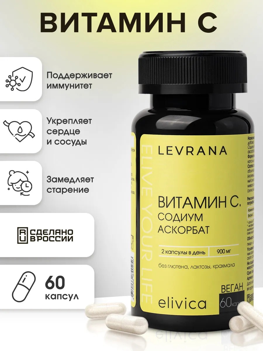 levrana Витамин С 900 мг БАД для иммунитета, 60 капсул
