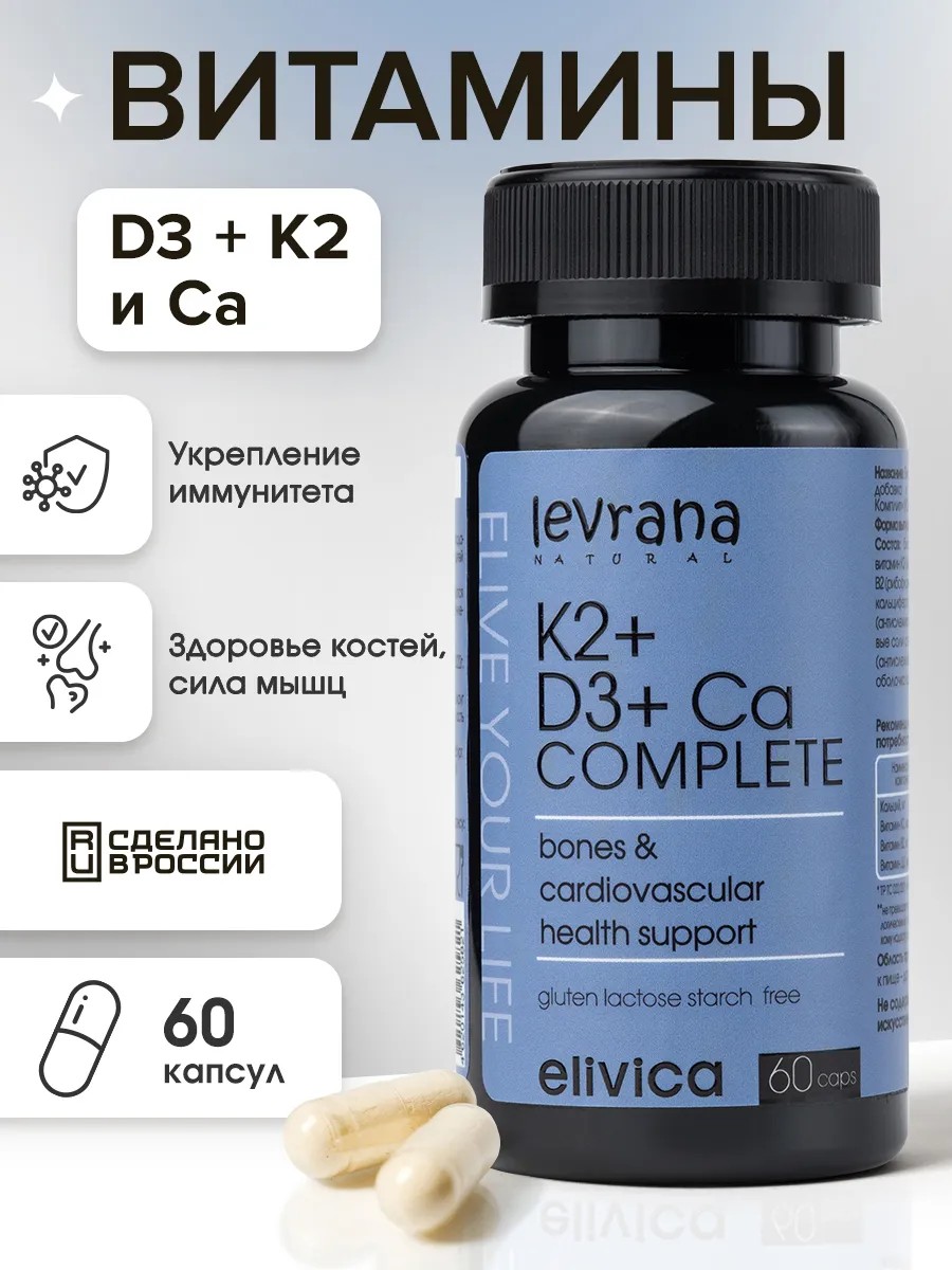 levrana Витамин D3 К2 и кальций комплекс, 60 капсул