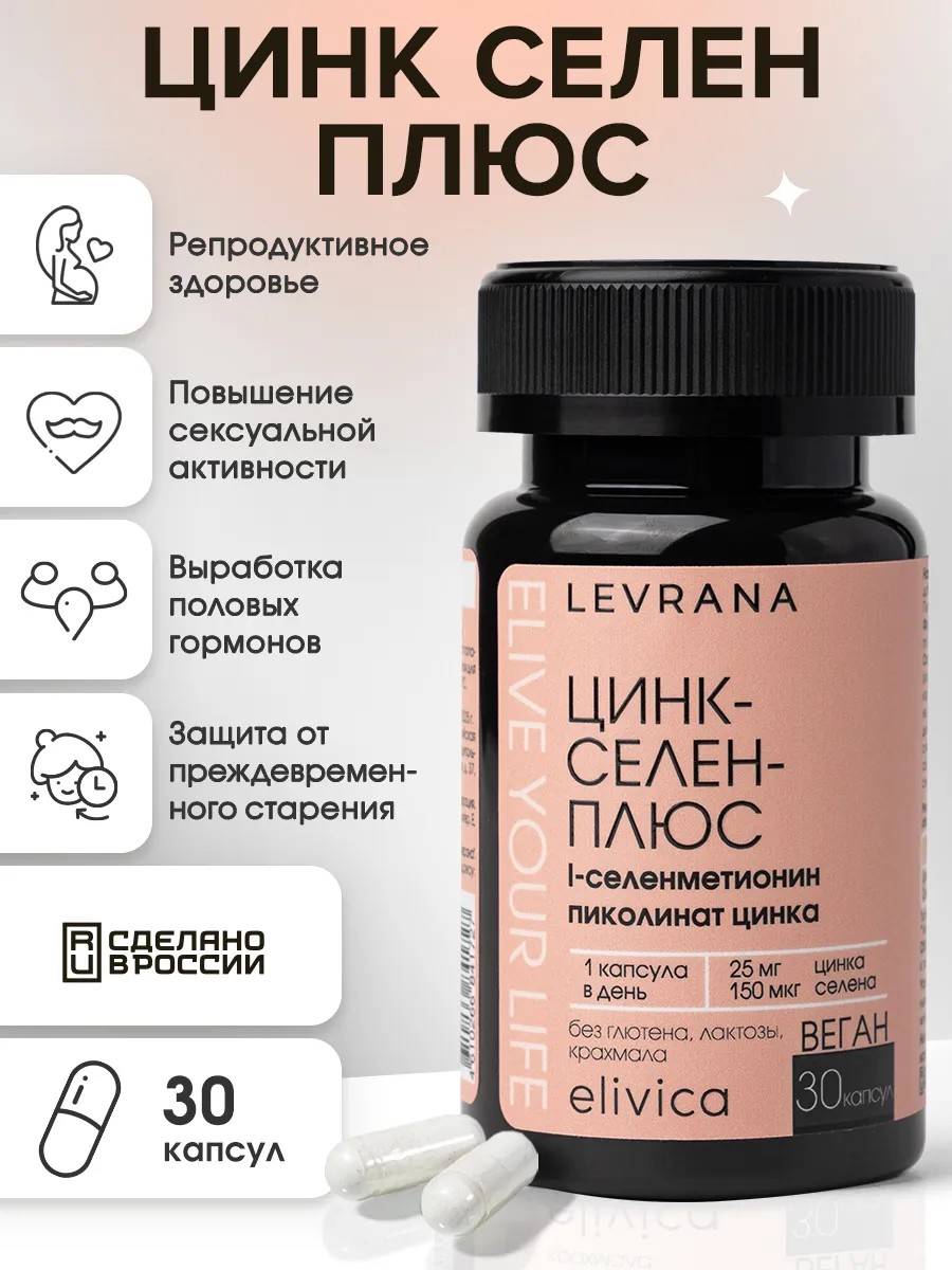 Селен — мощный антиоксидант, необходимый для поддержания мужского и женского репродуктивного здоровья. Селен способствует повышению фертильности у женщин, увеличивая количество и качество яйцеклеток, а также улучшая их способность к оплодотворению. У мужчин селен повышает подвижность сперматозоидов и увеличивает их количество, что повышает шансы на успешное зачатие. Кроме того, селен защищает репродуктивные органы от воздействия свободных радикалов и других вредных факторов, снижая риск развития различных заболеваний на клеточном уровне. Также селен оказывает общеукрепляющие действие – помогает предотвратить преждевременное старение организма, снижает риск возникновения сердечно-сосудистых заболеваний и способствует нормализации уровня холестерина, являясь незаменимым элементом для нормального функционирования щитовидной железы. Рекомендации по применению: взрослым по 1 капсуле в день во время еды. Продолжительность приема -1 месяц. При необходимости прием БАД можно повторить. Противопоказания: индивидуальная непереносимость компонентов БАД, беременность, кормление грудью. Перед применением рекомендуется проконсультироваться с врачом. Натуральные бады elivica - это концентраты для активной и качественной жизни. Наши БАДы так же ищут по запросу эливика или elivica. У нас есть акции и распродажи, вы можете купить наши товары в подарок со скидкой!