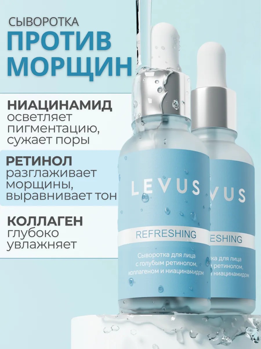 Преобразите кожу с нашей антивозрастной сывороткой LEVUS! Ретинол и ниацинамид для лица эффективно борются с морщинами, пигментацией и расширенными порами. Коллаген для лица и голубой ретинол для лица обеспечивают упругость и лифтинг, эффект как от ботокса для лица! Сыворотка для лица увлажняющая и осветляющая, выравнивает тон. Подходит для век, массажа и как основа под макияж. Забудьте про болтушки! Эта корейская формула - секрет вашей молодой и сияющей кожи! Себорегулирующая, отбеливающая. anti age, для массажа лица. Сыворотка с витаминами для сухой и чувствительной кожи, увлажняющая профессиональная подтягивающая, анти возрастная сыворотка против морщин анти эйдж 50+