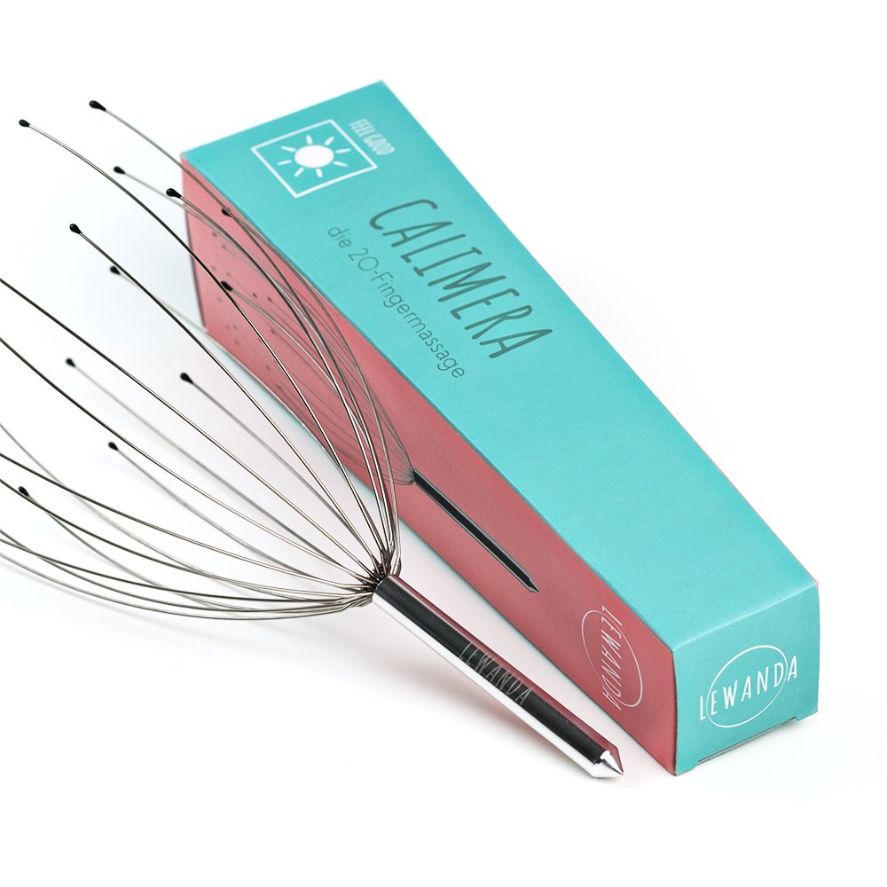 Depth relaxation for giving away: When developing Calimera, we thought for you.The packaging is designed so that you can give it away to your loved ones with a clear conscience.So you can treat yourself to a well -deserved break together!.Always at hand: whether when traveling, in the office or at home.Calimera is handy and fits in every handbag so that you never have to do without your massage for the soul again.The high -quality handle is made of aluminum, which is why you hardly have to carry any additional weight around with you.Free happiness hormones: the Lewanda Massagespezen, or the head crawler, as you can also lovingly call the massage stick, pour happiness hormones like dopamine when using.And who doesn't like a good moodSalvation of blood circulation: In addition to the relaxing effect, the head massager helps against migraines and promotes blood circulation.This is important so that the vital oxygen also comes when it is needed.Symptoms for poor blood circulation are, for example, numbness, a cold nose or chronic tiredness.Switch off, relax enjoy: in everyday life there is rarely the time.But that should be fisted out in full."Calimera" offers you a modern head massage based on a traditional model.20 fingers are divided into two levels asymmetrically and cause a pleasant tingling all over the body!.