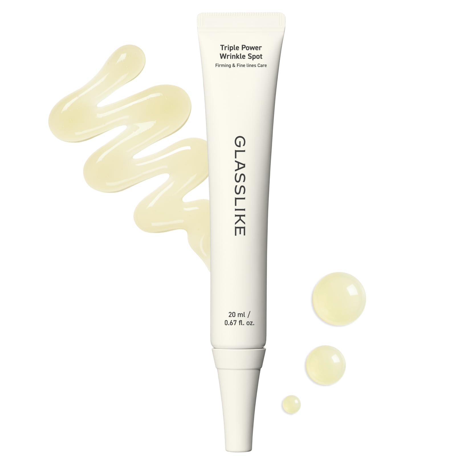 Perfect parings for intensive Wrinkle Care, Pair with LG Pra.L SUPERFOAM Galvanic Booster for 2.2x improvement in skin firmness from within Total session time: 1 minute per eye area, total 2 minutes Best time to use: 3 to 4 times per week, morning and evening How to use: Slowly glide as if you are smoothing out wrinkles (Contour) and then hold it over specific areas for intensive care (Boost). Improvement through triple care in Skin hydration, firming and anti-wrinkle. 196 inner skin moisture level increased 160 eye-area skin tightened 133 under-eye skin tone improved. Soft and melt-in texture delivers gentle wrinkle care, firming and deep hydration day and night with low irritation. Glasslike's special hydration, firming and moisture barrier system: GLOW HYPER includes EGF, Arginine Glutamate, Hyaluronic acid and Adenosine. Key Ingredients : GLASSLIKE advanced Bakuchiol encapsulated with the skincare specialist, LG H H's technology for visible anti-aging results!. Glasslike Triple Power Wrinkle Spot is for those who struggle with these concerns! - Worried about fine lines forming as skin loses elasticity - Tend to frown a lot, so early wrinkles are a concern! - Why do wrinkles become more noticeable when I smile? - Feels like smartphone use makes my neck lines worse.