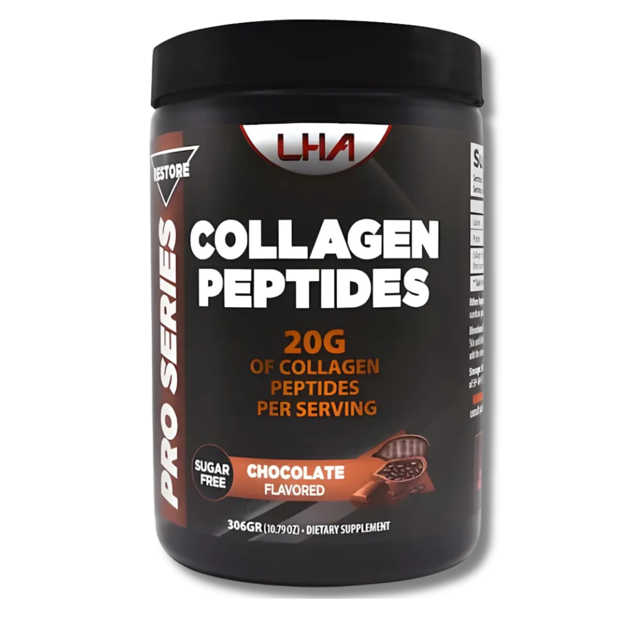 LHA Collagen Peptides Powder Chocolate Flavor Dietary Supplement for Skin Hair Nails Bone & Joint Support 10 oz