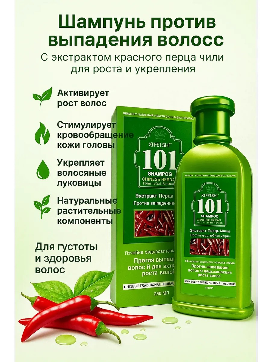 Шампунь с перцем чили от облысения – это инновационное средство, созданное для стимуляции роста волос и борьбы с их выпадением. Специально разработанная формула на основе экстракта красного перца помогает активизировать кровообращение в коже головы, что способствует улучшению питания волосяных фолликулов и ускоряет процесс роста волос.