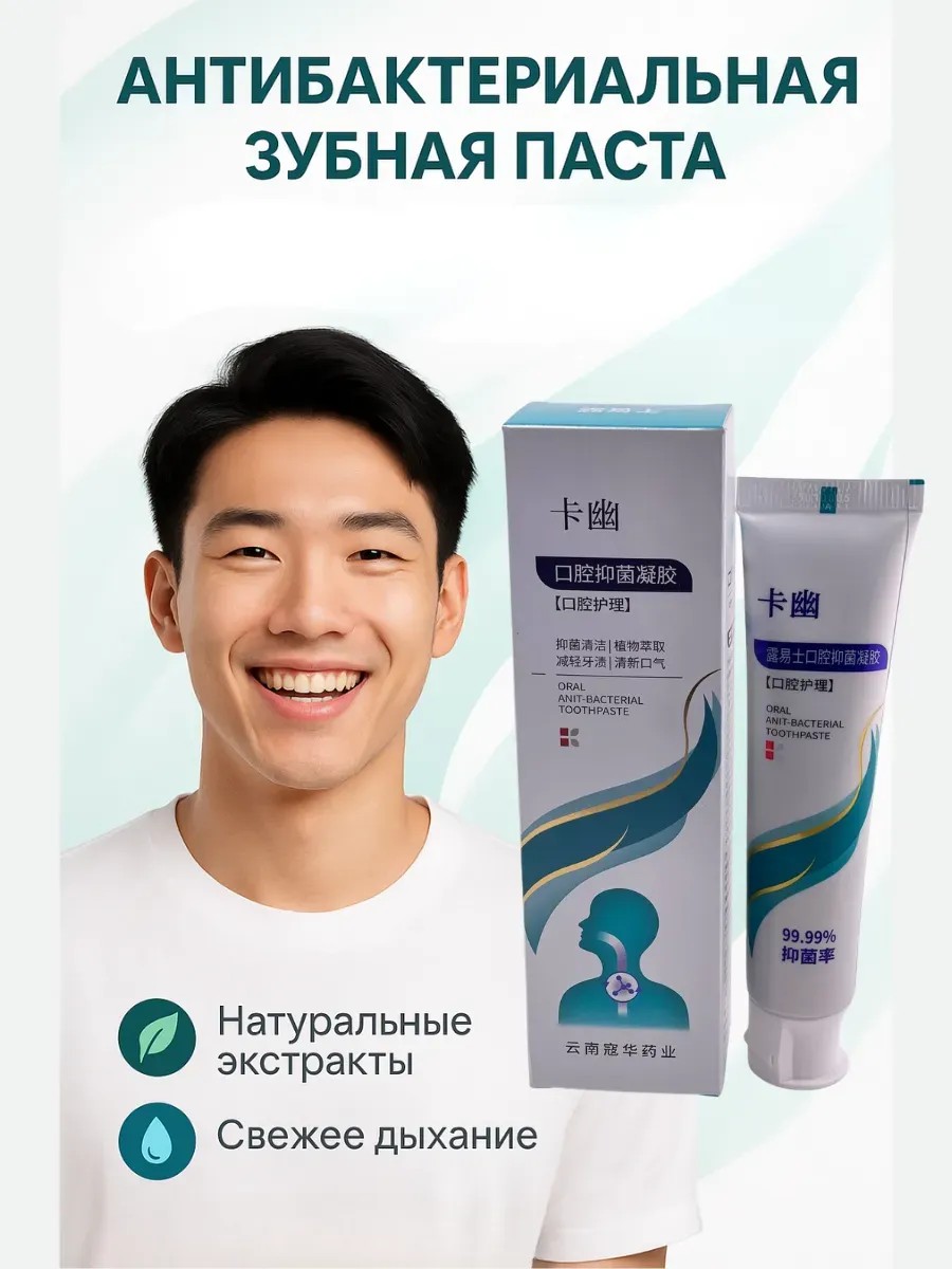 Антибактериальная зубная паста/гель — бережный уход за полостью рта на каждый день. Мягкая формула с растительными экстрактами помогает уменьшать мягкий зубной налёт, освежать дыхание и поддерживать здоровье дёсен. Антибактериальная зубная паста для свежего дыхания действует как гель для полости рта: равномерно распределяется, легко пенится и аккуратно очищает эмаль без ощущения жжения. По заявлению производителя, средство подавляет рост бактерий до 99,99%, что способствует ощущению чистоты и снижению неприятного запаха изо рта после еды и напитков. Паста с растительными экстрактами подойдёт взрослым и подросткам, в том числе обладателям чувствительных дёсен, для ежедневной гигиены дома и в дороге.