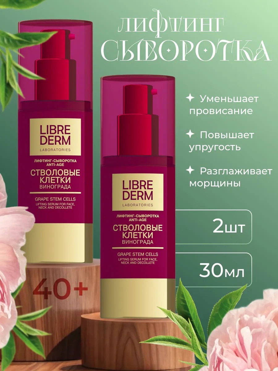 Стволовые клетки винограда лифтинг-сыворотка Anti-Age 30 мл 2 шт - увеличивает плотность кожи, уменьшает провисание, повышает упругость и эластичность, разглаживает глубокие и мелкие морщины, укрепляет липидный барьер.