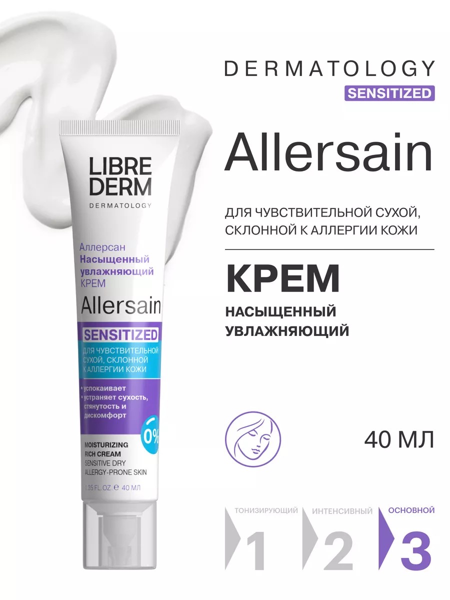 Либридерм Allersain - увлажняющий насыщенный крем для лица, разработанный специально для ухода сухой и чувствительной кожи. Его основная цель - уменьшение признаков чувствительности и предотвращение обезвоживания.