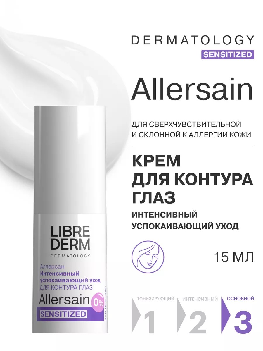 Аллерсан уходовый крем, который поможет вам избавиться от дискомфорта и сухости кожи вокруг глаз - это интенсивный успокаивающий крем от LIBREDERM. Специально разработанный для сверхчувствительной кожи, он содержит пептидный комплекс и ниацинамид, которые помогут улучшить состояние вашей кожи.
