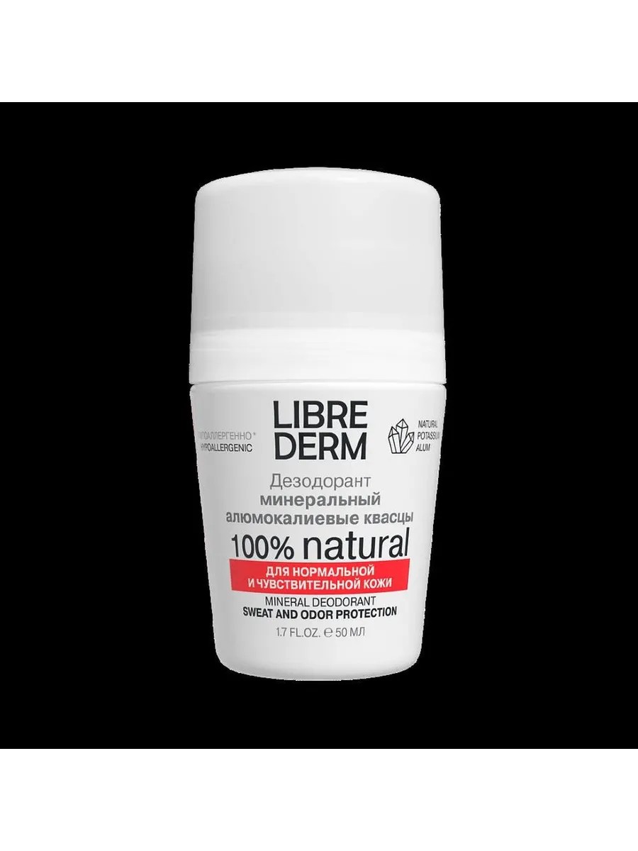 Либридерм дезодорант минеральный 50 мл, шариковый - обладает мощным природным бактериостатическим действием. Основа дезодоранта - алюмо-калиевые квасцы: мощный сорбент, обезвоживает находящиеся на коже бактерии - причину возникновения запаха, и вызывает их гибель; не перекрывает потовые протоки; не закупоривает поры. Устраняет неприятные последствия потоотделения - запах и излишнюю влагу, не нарушая естественной функции кожи.
