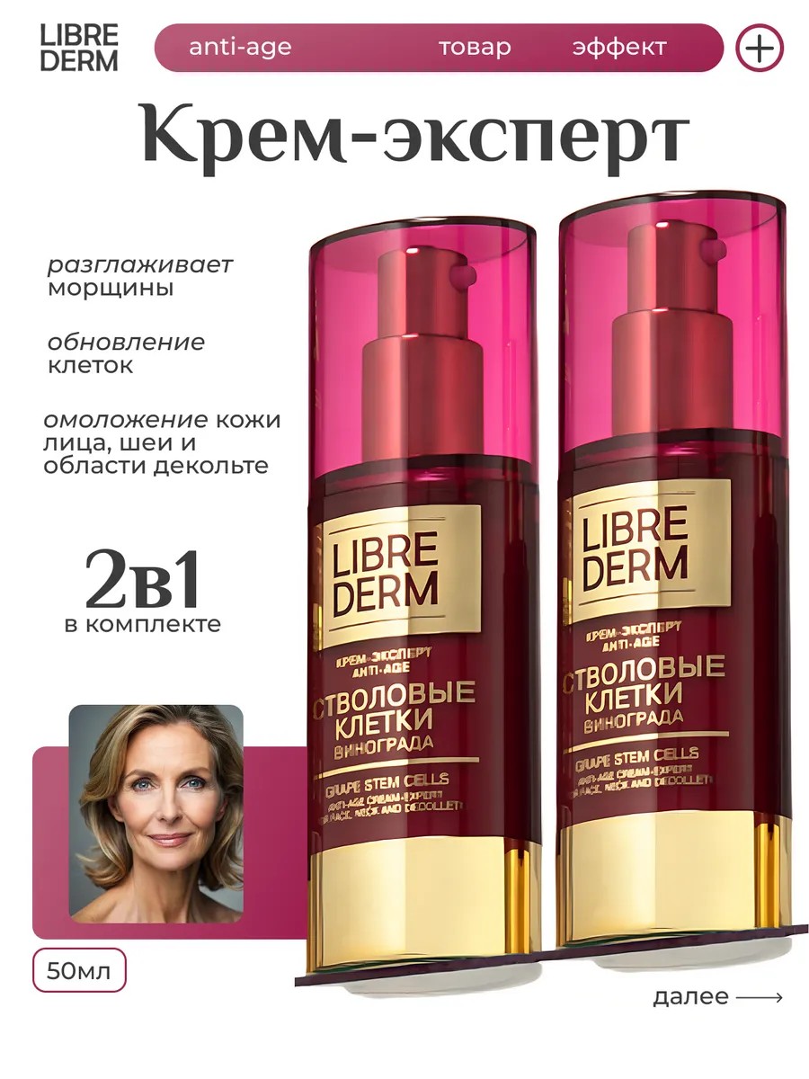 Стволовые клетки винограда крем-эксперт Anti-Age 50 мл от Либредерм -разработан для омоложения кожи лица, шеи и области декольте в комплексном ежедневном уходе за кожей.