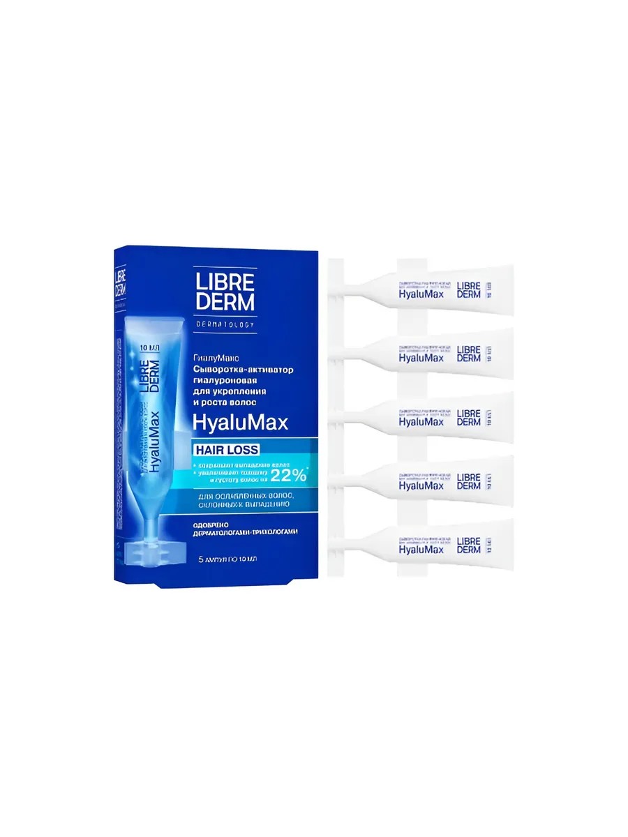 Libriderm hyalumax hyaluronic serum-activator for strengthening and hair growth - recommended to reduce hair loss and stimulate hair growth, exposed to the negative impact of external factors (styling, ultraviolet, cold, improper care), as well as internal changes (stress, medication, past seasonal and viral diseases, hormonal fluctuations, diet).