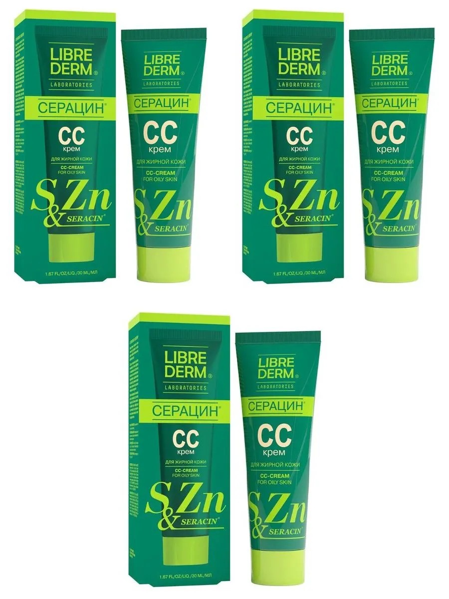 libriderm seracin cc-cream 30ml. effectively masks the imperfections of oily skin and corrects sebum secretion at the cellular level, reduces redness and moisturizes the skin when it especially needs it for skin prone to oiliness and acne. Aqua, octocrylene, cyclopentasiloxane, Cl 77891, hydroxyethyl urea, C12-15 alkyl benzoate, butyl methoxydibenzoylmethane, boron nitride, ethylhexyl methoxycinnamate, Ci 77891 (titanium dioxide), mica, tin oxide, glyceryl stearate citrate, glyceryl stearates, PEG-100 stearate, C30-45 alkyl cetearyl dimethicone crosspolymer, PEG-12 dimethicone, hydrogenated lecithin, polyglyceryl-3 stearate, tocopherol, glycerin, Symbrium officinale extract, arctium lappa root extract, citric acid, glycolic acid, zinc PCA, sclerotium gum, sodium acrylates copolymer, lecithin, cl 77492, polysorbate 80, sulfur, diethylhexyl syringylidenemalonate, caprylic/capric triglyceride, silica, pvp, ci 77891, cl 77491, phenylpropanol, propanediol, caprylyl glycol, cl 77499, phenoxyethanol, ethylhexylglycerin, chlorphenesin, disodium edta, parfum, tetrasodium edta, bht. Librederm is an international cosmetics brand that offers modern solutions for any dermatological need. Librederm is a symbiosis of scientific achievements in pharmaceuticals and modern solutions in the field of cosmetology. Librederm seracin CC cream is a foundation-based product. Appearance: a creamy foundation with a beige tint. CC cream is a universal product that effectively conceals imperfections of oily skin. It regulates sebum secretion at the cellular level, reduces redness, and moisturizes the skin. The cream's light texture is quickly absorbed. The pigments don't clog pores, but form an even, thin layer, giving the skin a natural, beautiful tone without a greasy shine. A universal product that not only effectively conceals imperfections of oily skin, but also regulates sebum secretion at the cellular level, improving skin's appearance.