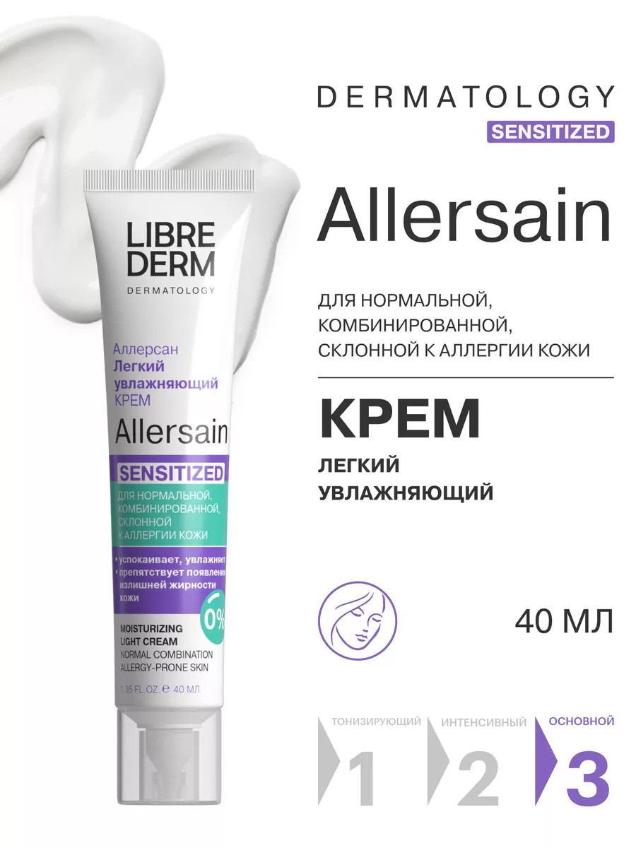 Либридерм Allersain увлажняющий крем для лица, разработан специально для ухода за чувствительной, нормальной и комбинированной кожи. Крем обеспечивает коже увлажнение и смягчение, особенно важное для людей с нежной, склонной к аллергии кожей.