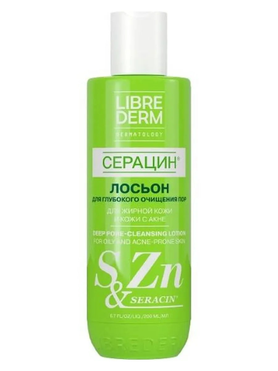ЛИБРИДЕРМ СЕРАЦИН ЛОСЬОН Д/ГЛУБОКОГО ОЧИЩЕНИЯ ПОР 200МЛБренд LIBREDERM (Либридерм)Линия СЕРАЦИН [SERACIN] - широкая коллекция средств для комплексного ухода за жирной кожей и кожей, склонной к акне.LIBREDERM Серацин лосьон для глубокого очищения пор - для жирной кожи и кожи с акнеВнешний вид и свойства: Лосьон легко наносится и быстро впитывается, не оставляя следов.Возрастная категория: с 20 летКомплекс с АНА-кислотами в составе глубоко очищает и сужает поры.Матирует и выравнивает рельеф кожи, устраняя несовершенства без пересушивания.АКТИВНЫЕ ИНГРЕДИЕНТЫ:- Экстракт пальчикового лайма богат АНА-кислотами, которые бережно эксфолиируют отмершие клетки эпидермиса. Кожа приобретает здоровый цвет, сияние и нежность.- Балансирующий комплекс нового поколения (экстракты репейника и гулявника, гидроксикислоты и соль цинка) оказывает антисептическое, себорегулирующее, матирующее и очищающее действия.- Пантенол (5 % провитамин В5) успокаивает кожу. Контролирует воспалительные реакции и повышает защитные свойства кожи к воздействию раздражителей.- Sodium PCA- безопасный и эффективный природный увлажнитель, получаемый из аминокислот овощей.- Соль цинка (цинка глюконат) - сужает поры кожиЭФФЕКТИВНОСТЬ:Глубоко очищает и сужает поры. Бережно удаляет омертвевшие клетки эпидермиса, выравнивают рельеф кожи и предотвращают появление черных точек.РезультатЧистая, матовая, мягкая кожа. Нет прыщей, излишнего выделения кожного сала и «черных точек»00