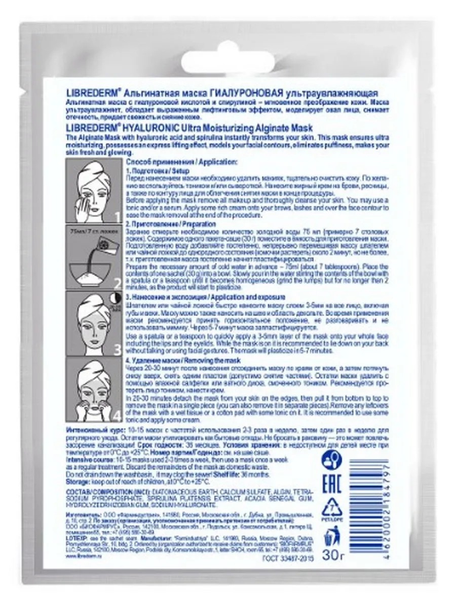Либридерм Маска Гиалурон. Альгинат. Ульт/увл. 30,0 N1-3 шт.
