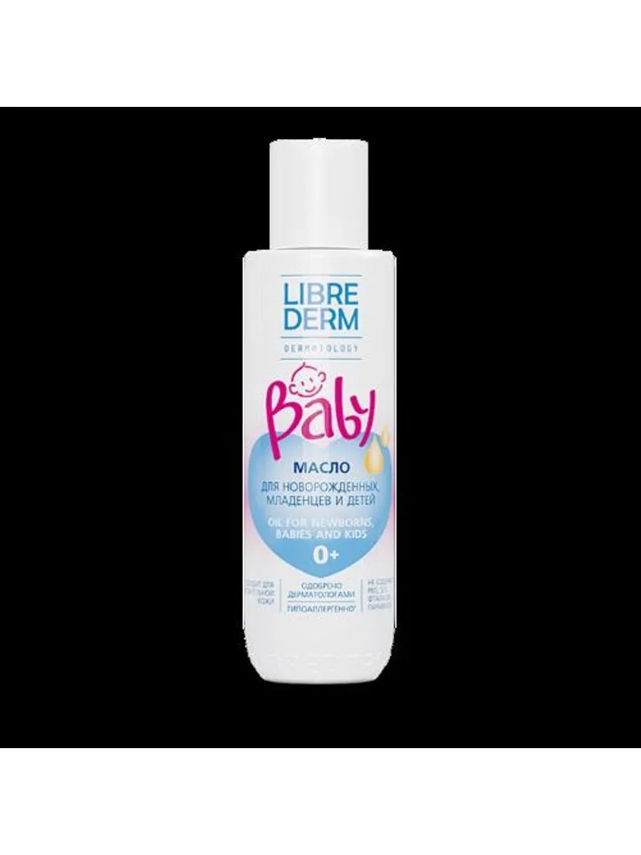 ЛИБРИДЕРМ BABY МАСЛО ДЛЯ НОВОРОЖДЕННЫХ/МЛАДЕНЦЕВ/ДЕТЕЙ 150МЛ. прекрасно увлажняет и защищает даже самую чувствительную кожу, обеспечивает ее необходимыми жирными кислотами и витаминами А, С и Е, улучшает состояние кожи. Идеально подходит для развивающего массажа и ухода после купания: нежное масло легко распределяется по коже, обеспечивая отличное скольжение, не липнет и не создает ощущение излишней жирности. для развивающего массажа и ухода после купания Paraffinum Liquidum (Mineral Oil), Dodecane, Polyglyceryl-3 Diisostearate, Helianthus Annuus Seed Oil, Glycine Soja Oil, Vitis Vinifera Seed Oil, Olea Europaea Husk Oil, Tocopherol, Retinyl Palmitate, Ascorbyl Palmitate, Parfum, Tocopheryl Acetate, Tocopherol (Mixed), Beta-Sitosterol, Squalene, Glyceryl Linolenate. Нежное масло легко распределяется по коже, обеспечивая отличное скольжение. Не липнет и не создает ощущение излишней жирностиАктивные ингредиенты Масла подсолнечника, оливы, сои и масло виноградных косточек в составе прекрасно смягчают, увлажняют, восстанавливают и защищают нежную детскую кожу.Эффективность Гипоаллергенно*Одобрено дерматологамиЭффективность доказана клиническими исследованиямиФизиологическая особенность кожи малышей, которая значительно отличается от кожи взрослого, обуславливает необходимость в специальном уходе, дополнительном питании и увлажнении. Масло LIBREDERM Baby разработано специально для кожи новорожденных и младенцев, прекрасно увлажняет и защищает даже самую чувствительную кожу, обеспечивает ее необходимыми жирными кислотами и витаминами А, С и Е, улучшает состояние кожи. Идеально подходит для развивающего массажа и ухода после купания: нежное масло легко распределяется по коже, обеспечивая отличное скольжение, не липнет и не создает ощущение излишней жирности.*- Максимально снижен риск возникновения аллергии.Не содержит PEG, SLES, SLS, фталатов, парабенов, силиконов, красителей. Гипоаллергенная отдушка.00