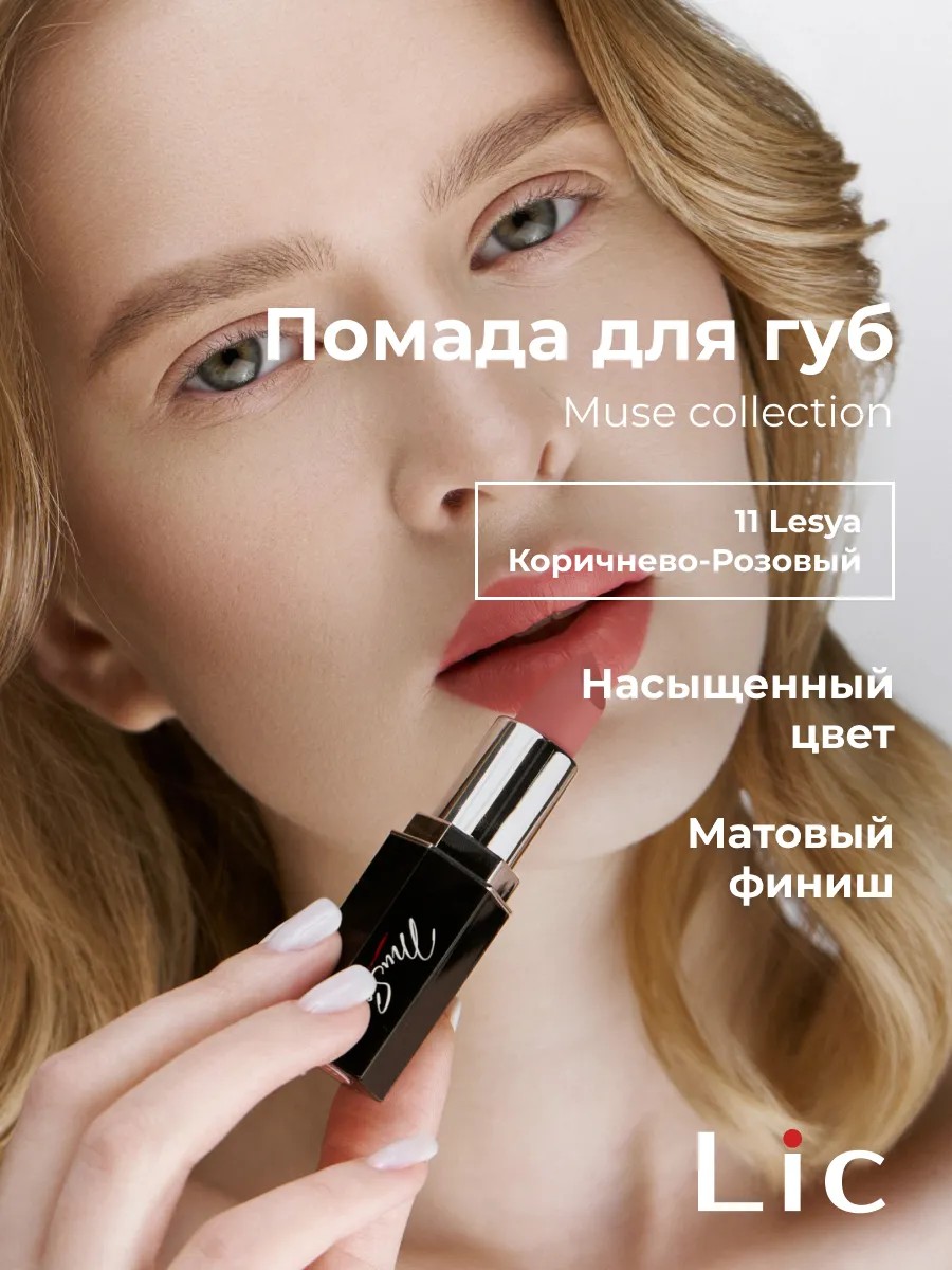 Коллекция глубоких интенсивных оттенков помад Lic Muse collection создана, чтобы вдохновлять! Ухаживающая формула помады с насыщенной пигментацией равномерно наносится и приобретает полуматовый финиш.