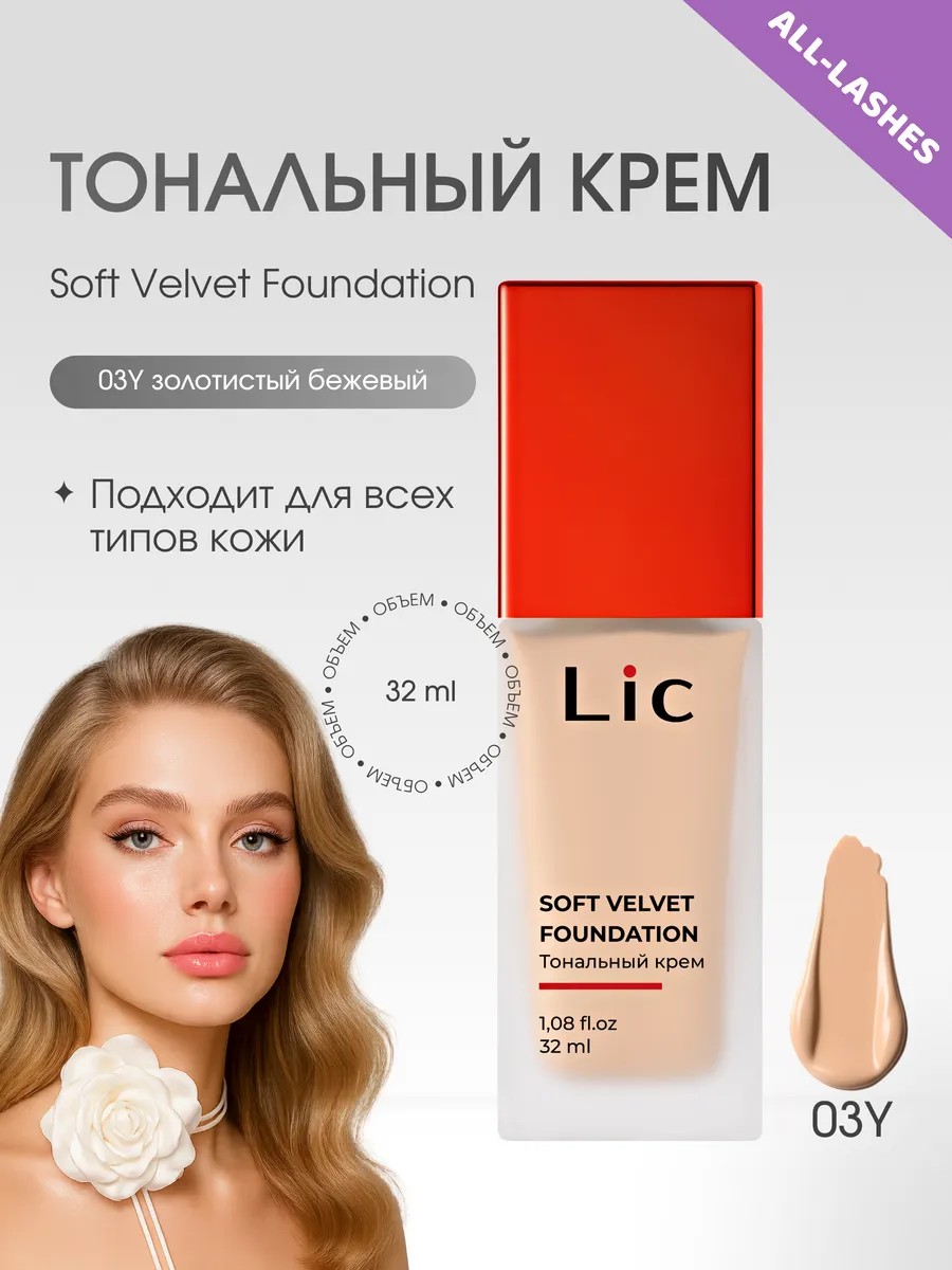 Тональный крем Lic - это невероятный комфорт и стойкость до 12 часов! Позволит создать равномерный, однородный, естественный тон кожи. Ухаживающие и увлажняющие компоненты в составе моментально скрывают покраснения, пигментацию, воспаления и другие недостатки, не подчеркивая шелушение. Благодаря цинку в составе, крем регулирует работу сальных желёз, отлично борется с жирным блеском и может стать настоящим must have для ежедневного макияжа даже жарким летом. Кожа становится бархатистой и матовой, а тон ровным. Хорошо пигментированный. Превосходно выравнивает и скрывает недостатки кожи.Волшебное средство для непревзойденного образа - это тонкая гармония между свежестью и совершенством, которую предлагает Тональный крем Лик. Это настоящий мастер в создании безупречного тона кожи, который подарит ей легкость, равномерность и изысканность.Благодаря плотной текстуре этого изумительного крема, каждая капля преображает лицо, невидимо скрывая все недостатки. Тональный крем Лик светлый и деликатный, словно нежное прикосновение первых солнечных лучей. Он словно рисует на лице светлую палитру цветов: от теплого слоновой кости до яркого света.Используя это уникальное тональное средство, вы добьетесь эффекта безупречной кожи по-настоящему профессионально. Роскошные оттенки этого тонального крема задействуют все возможности вашего лица и придают ему желанную ясность. Мягкое матовое покрытие лица будет сопровождать вас весь день, подчеркивая вашу индивидуальность и естественный загар.