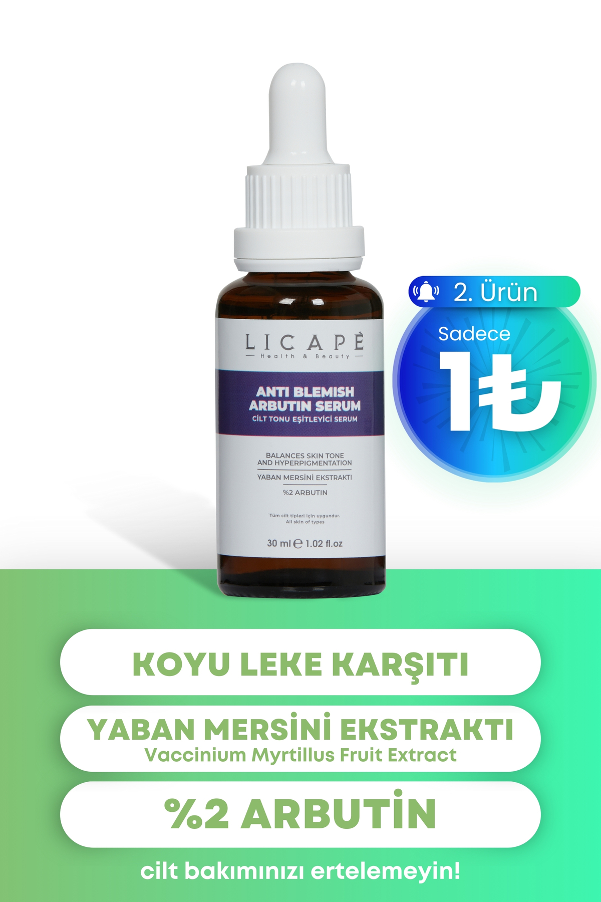 Licape Anti-Blemish Skin Tone Balancing 2 Arbutin Serum,While it helps equalize skin tone with its light and easily absorbed structure. It helps you achieve a radiant skin structure.