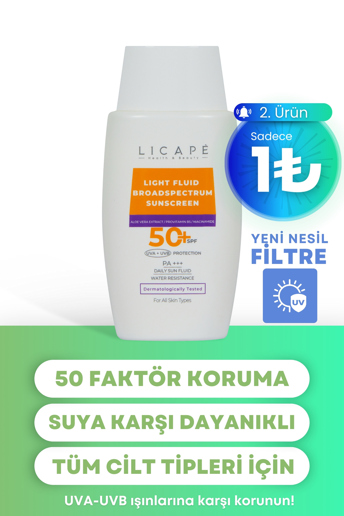- Licape Likit Günes Kremi,Ipeksi bitisli ve güçlü SPF korumasina sahip sivi günes koruyucu, içeriginde bulunan Aloe Vera özü ve Provitamin B5 sayesinde cildinizin nemi korumasini saglarken günesin zararli isinlarina karsi korur. Yagli his birakmayan dokusu ile cilt tarafindan hizlica emilir.