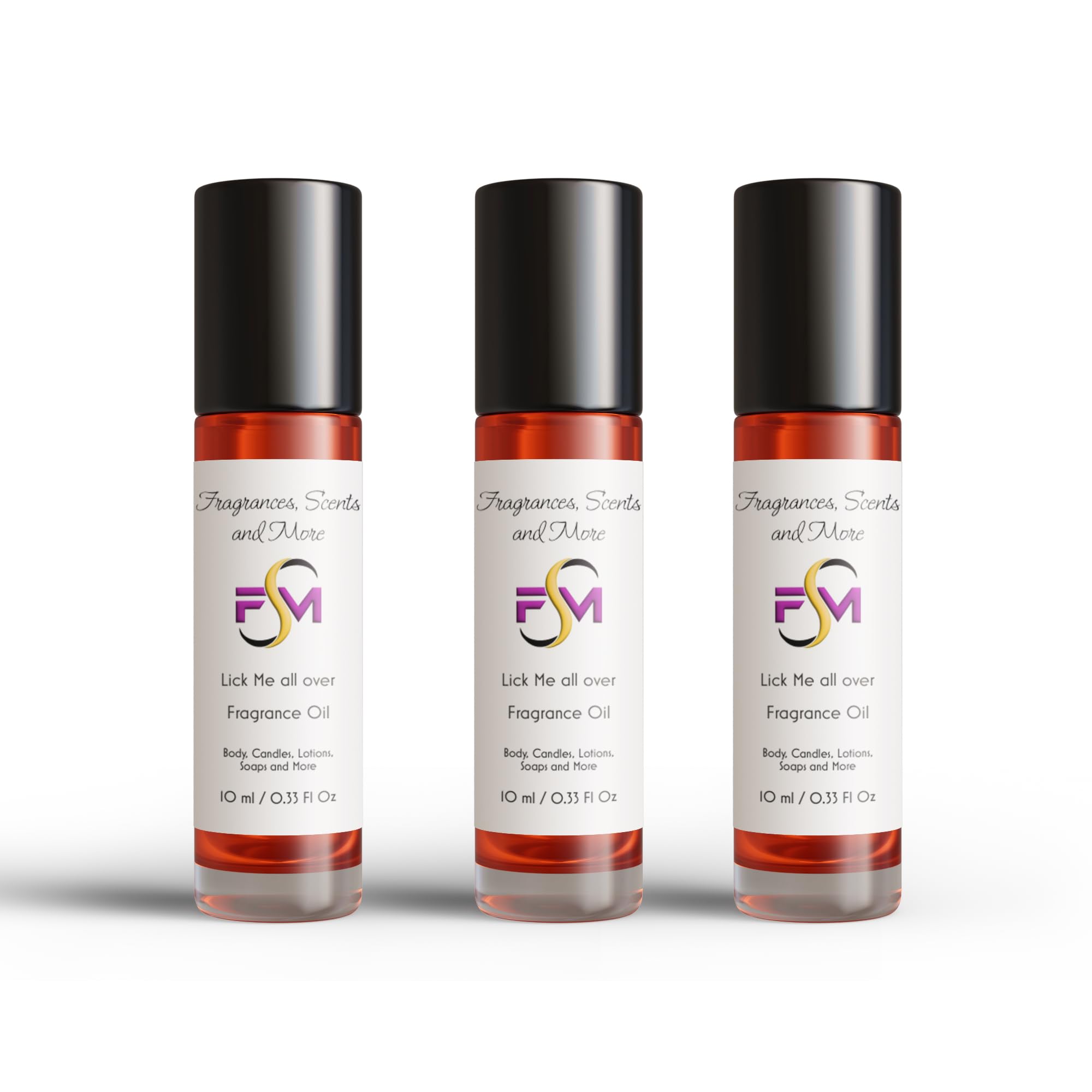 Lick Me All Over Fragrance Oil - 3 Bottles 0.33 Fl Oz Glass Roll On (10ml) 0.33 Fl Oz (Pack of 3)