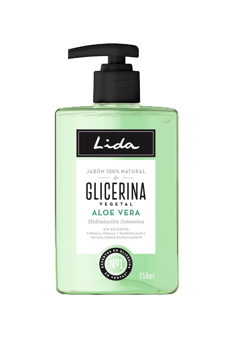 Lida, the 100 natural soap with vegetable glycerin and aloe vera, provides intensive hydration for your skin. For over 60 years, we have been making soap using traditional methods and naturally derived ingredients. The result is a pure, 100 natural soap with vegetable glycerin that gently cleanses the skin while deeply moisturizing it for superior natural hydration. Sulfate-free, vegan, and biodegradable formula. Suitable for all skin types. Suitable for family use. SAFETY WARNING For external use only. Avoid contact with eyes.For decades, Lida has handcrafted its entire product range using natural ingredients. What characterizes this brand is the union of tradition and innovation, resulting in a glycerin-based body care and hygiene line suitable for all skin types, even the most delicate. Lida hand soap provides the skin with all the care and hydration it needs. In addition to using natural ingredients in all its formulations, it eliminates any components that could be harmful to the skin. Lida's natural glycerin soap has moisturizing properties that help maintain good skin hydration. It is also antibacterial and helps repair and regenerate the skin. Aloe vera helps moisturize, protect, regenerate, and soothe itchy skin. The Glycerin and Aloe Vera range protects, hydrates, and cares for your skin. Furthermore, it offers all the soothing properties of aloe for even the most reactive and delicate skin. Lida is a 100 natural soap with vegetable glycerin that provides intensive hydration to your skin. Made using traditional methods with naturally derived ingredients, Lida cleanses the skin without drying it out, leaving it soft, smooth, and healthy-looking.Lida - Savon liquide pour les mains 100 naturel à la glycérine et à l'aloe vera Gel pour les mains Nettoie et hydrate en profondeur tous les types de peaux Préparation traditionnelle - 250 mlDESCRIPTION DU PRODUIT DESCRIPTION DU PRODUIT Lida, Le savon 100 naturel à la glycérine végétale et à l'aloe vera procure une hydratation intensive à votre peau. Depuis plus de 60 ans, nous fabriquons le savon de manière traditionnelle en utilisant des ingrédients d'origine naturelle. Le résultat est un savon pur 100 naturel à base de glycérine végétale qui nettoie délicatement la peau tout en l'hydratant en profondeur pour une hydratation naturelle supérieure. Formule sans sulfate, végétalienne et biodégradable. Indiqué pour tous les types de peaux. Convient pour un usage familial. AVERTISSEMENT DE SÉCURITÉ Pour usage externe uniquement. Éviter tout contact avec les yeuxLida Depuis des décennies, il fabrique toute sa gamme de produits de manière artisanale avec des ingrédients naturels. Ce qui caractérise cette marque est l'union entre tradition et avant-garde qui aboutit à une ligne de soin et d'hygiène corporelle à base de glycérine adaptée à tous les types de peaux, même les plus délicates. Le savon pour les mains Lida apporte à la peau tout le soin et l'hydratation dont elle a besoin. En plus d'utiliser des ingrédients naturels dans toutes ses formulations, il élimine tous les composants qui peuvent être nocifs pour la peau. Le savon à la glycérine naturelle Lida possède des propriétés hydratantes qui aident à maintenir une bonne hydratation de la peau. Il est également antibactérien et contribue à réparer et à régénérer la peau. L'aloe vera aide à hydrater, protéger, régénérer et apaiser les démangeaisons de la peau. La gamme Glycérine et Aloe Vera protège, hydrate et prend soin de votre peau. En outre, il offre toutes les propriétés apaisantes de l'Aloe pour les peaux les plus réactives et délicates. Lida C'est un savon 100 naturel à la glycérine végétale qui procure une hydratation intensive à votre peau. Élaboré de manière traditionnelle avec des ingrédients d'origine naturelle, Lida nettoie la peau sans dessécher et la laisse douce, lisse et d'apparence saine.