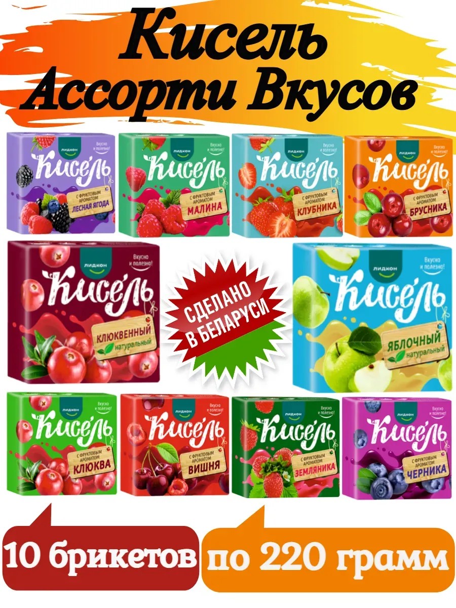 ЛИДКОН Кисель ассорти 10 вкусов в брикетах Белорусский