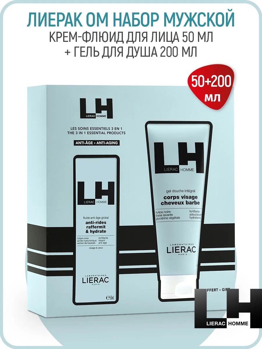 The Lierac Homme gift set (Lierac Homme Fluide Anti-Age Global + Lierac Homme Integral Shower Gel), 50 ml + 200 ml.