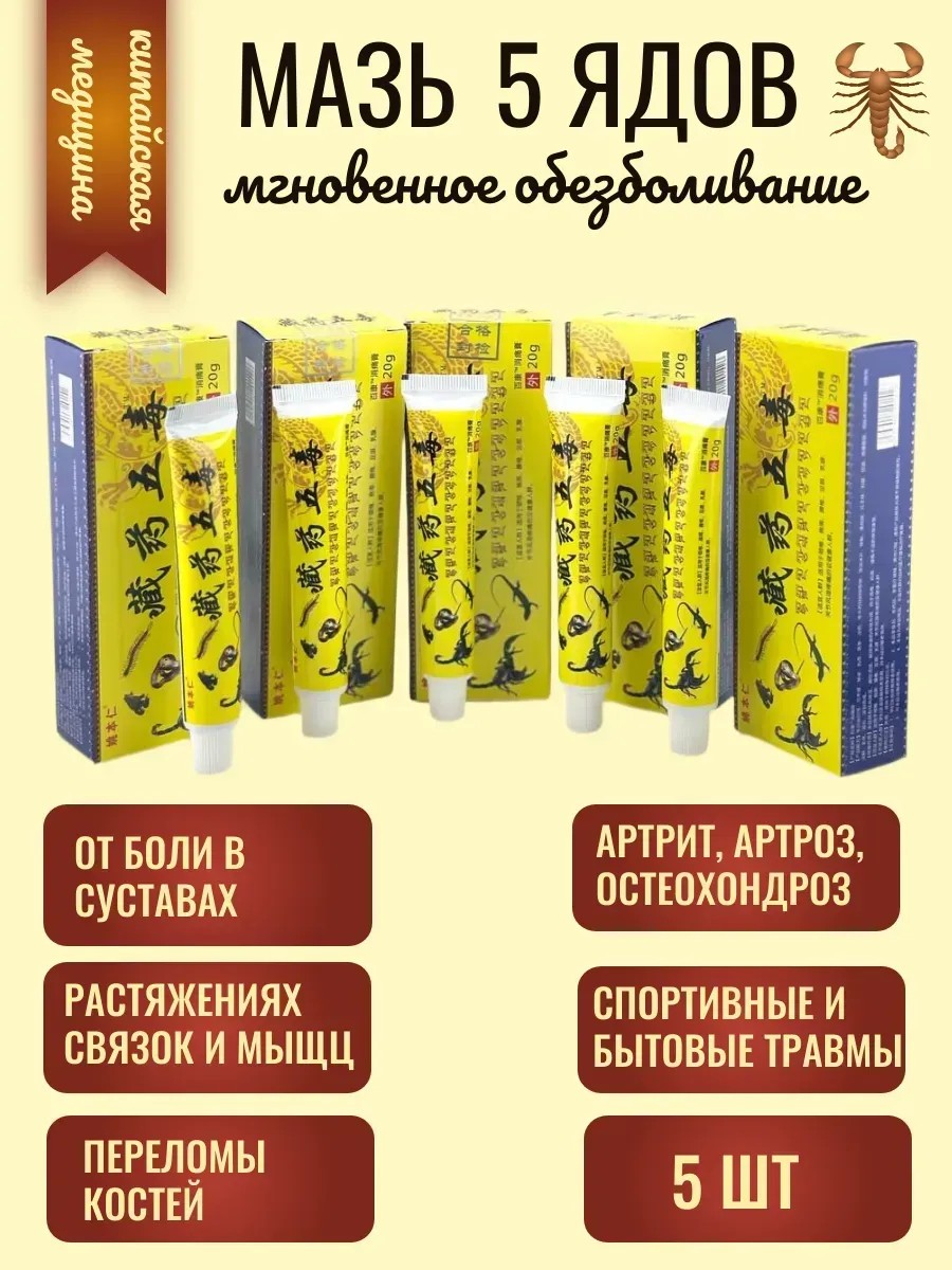 Откройте силу восточной медицины с тибетской мазью "Пять ядов" (藏药五毒膏), созданной на основе ядов пяти животных: скорпиона, змеи, ящерицы, многоножки и жаб. Этот уникальный состав глубоко проникает в ткани, снимая воспаление, отёчность и боли различного происхождения.