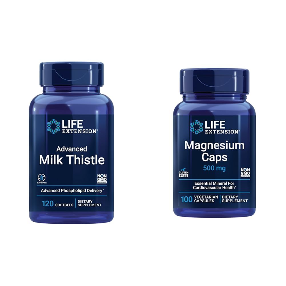 Life Extension Advanced Milk Thistle 120 Softgels and Magnesium 500mg Capsules for Liver Health Detox Support Heart Health and Healthy Bones