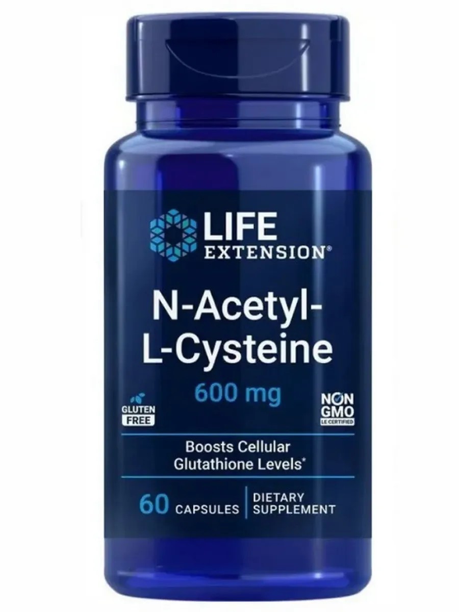 | Особенности продукта | Оригинальный антиоксидант NAC life extension N-ацетил-L-цистеин в дозировке 600 мг |