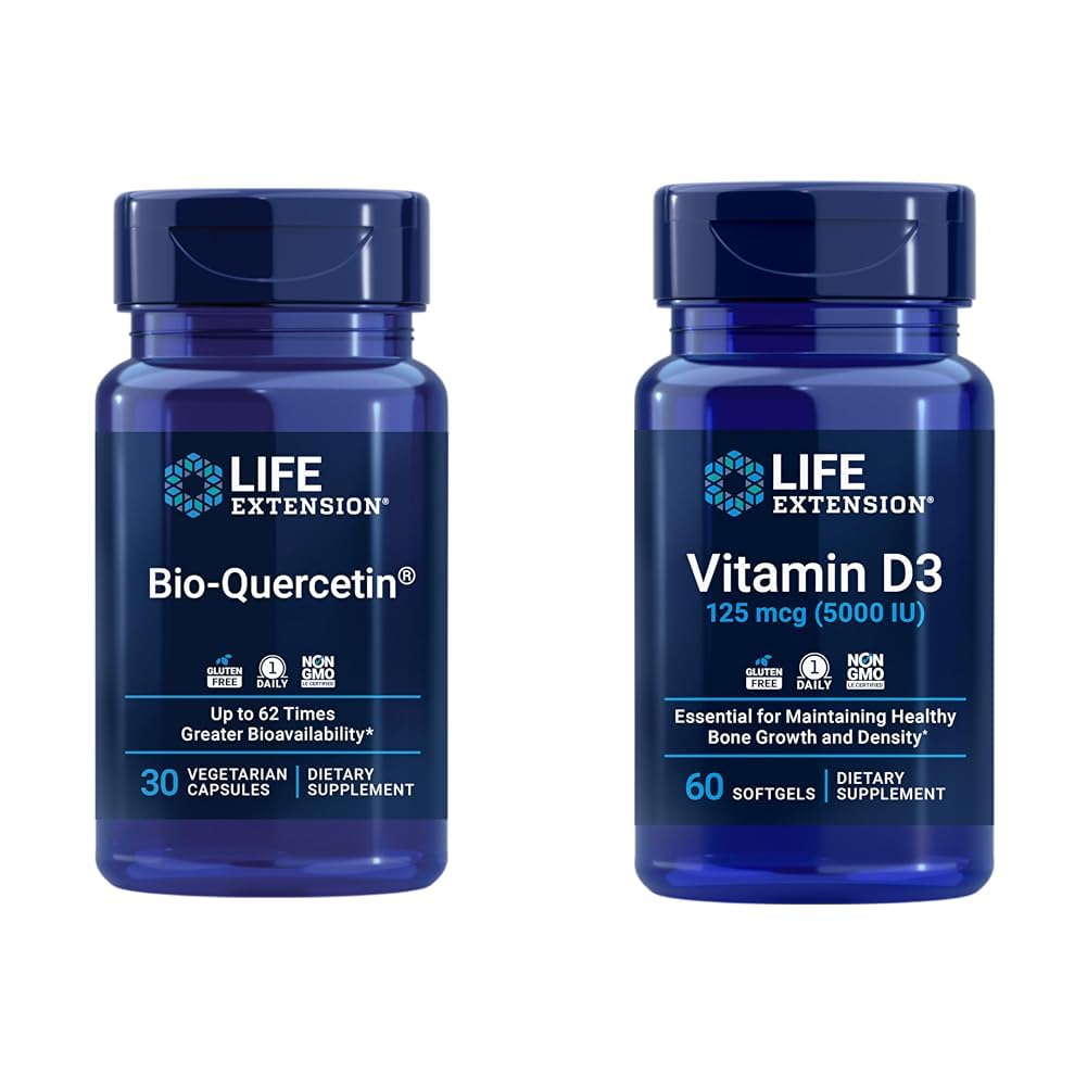 Life Extension Bio-Quercetin Immune & Heart Health Antioxidant 30 Capsules + Vitamin D3 5000 IU 60 Softgels