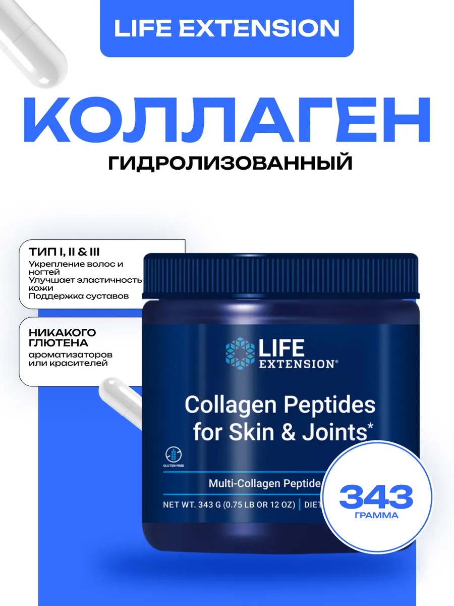 Life Extension Коллаген Порошок (Collagen Peptides for Skin & Joints) весом 343 грамма представляет собой высококачественный продукт, предназначенный для поддержки здоровья кожи и суставов. Этот коллаген порошок содержит коллаген говяжий, который играет ключевую роль в поддержании упругости и эластичности кожи, а также в укреплении суставов и связок. Легко растворяясь в любой жидкости, коллаген порошок становится удобным для ежедневного употребления, его можно добавлять в утренние смузи, кофе или супы, делая ваш рацион более полезным и сбалансированным. Коллаген для суставов помогает уменьшить дискомфорт при движении и поддерживает нормальную функциональность суставов, что особенно важно для активных людей и спортсменов. Коллаген порошок также способствует восстановлению кожи, уменьшая видимые признаки старения, такие как морщины и потеря упругости. Коллаген от Life Extension идеально подходит для тех, кто стремится к поддержанию молодости кожи и здоровья суставов. Использование коллагена в виде порошка обеспечивает высокую биодоступность, что позволяет организму максимально эффективно усваивать все полезные вещества. Life Extension Collagen Peptides for Skin & Joints – это ваш надежный партнер в поддержании красоты и здоровья изнутри. Включите коллаген порошок в свой ежедневный рацион и наслаждайтесь видимыми результатами. Попробуйте наш коллаген и убедитесь в его высоком качестве и эффективности!